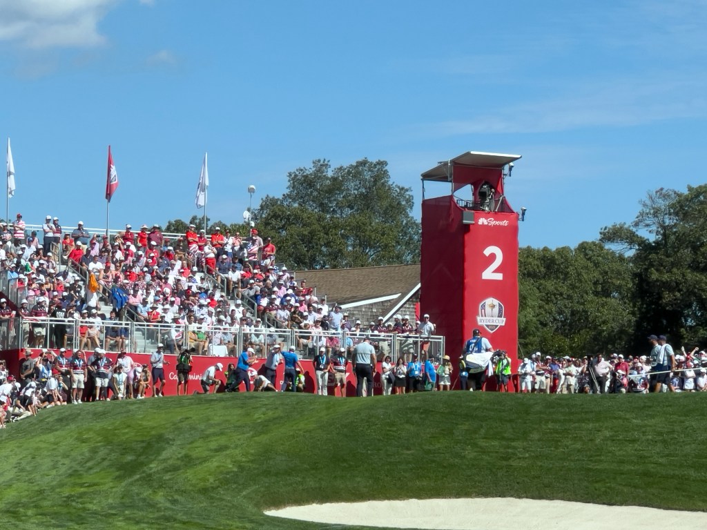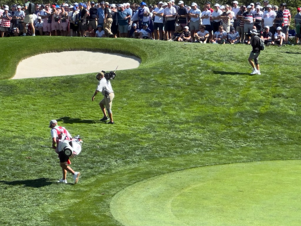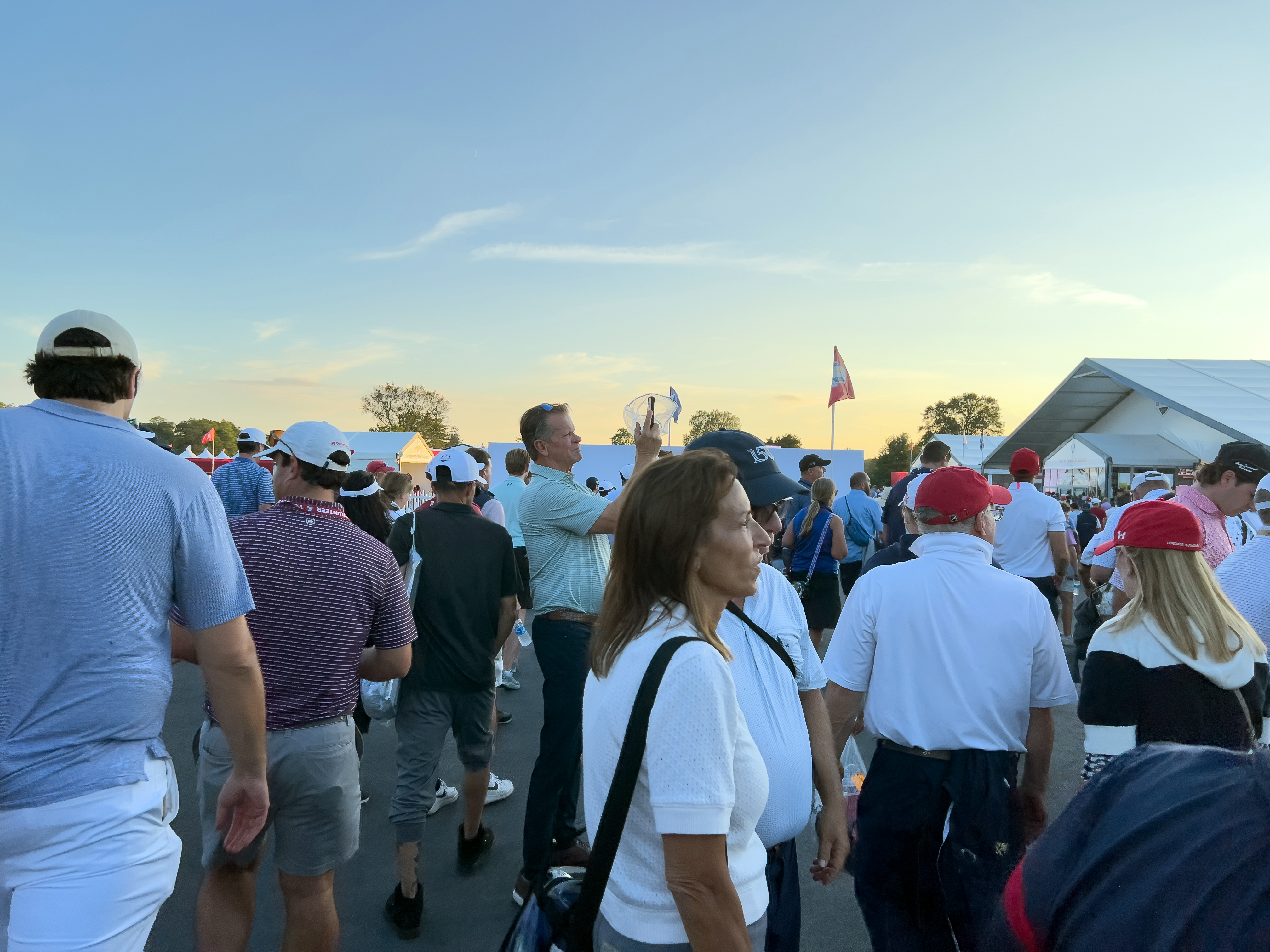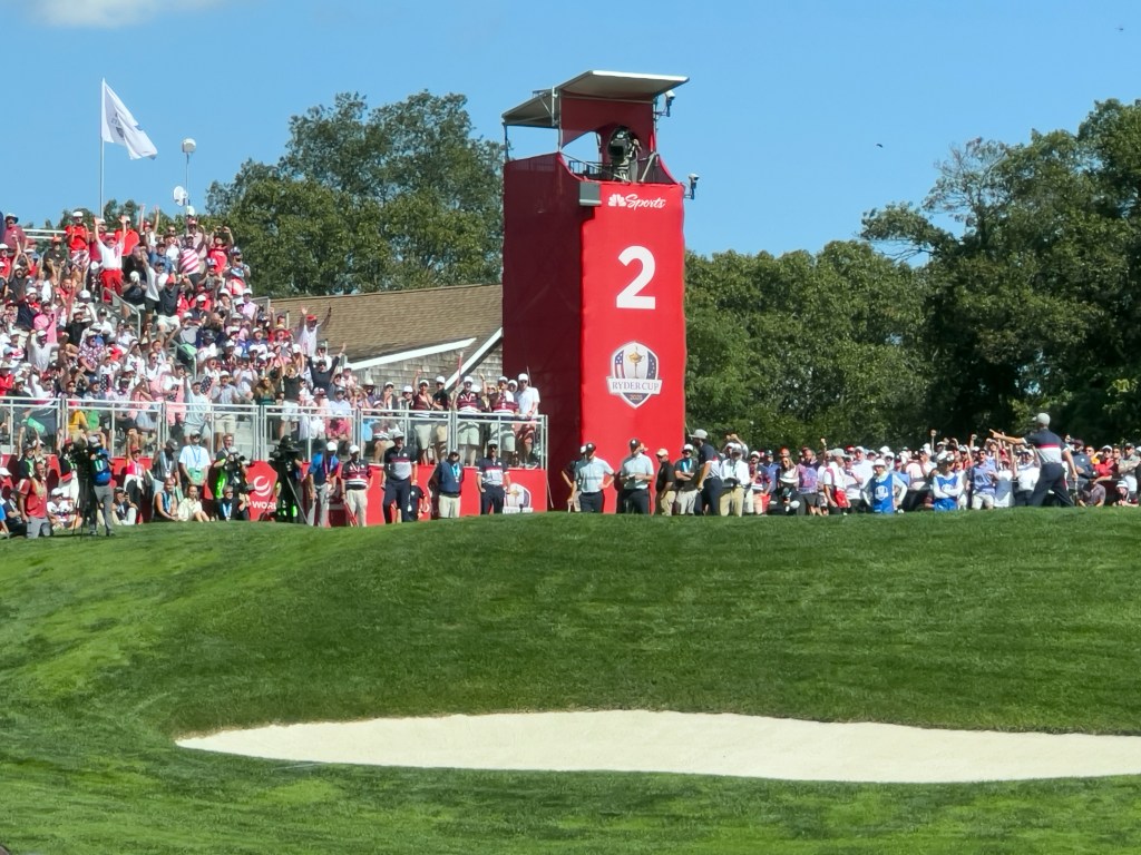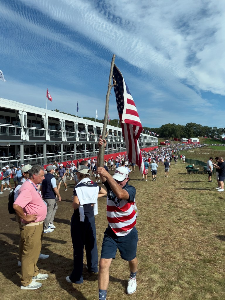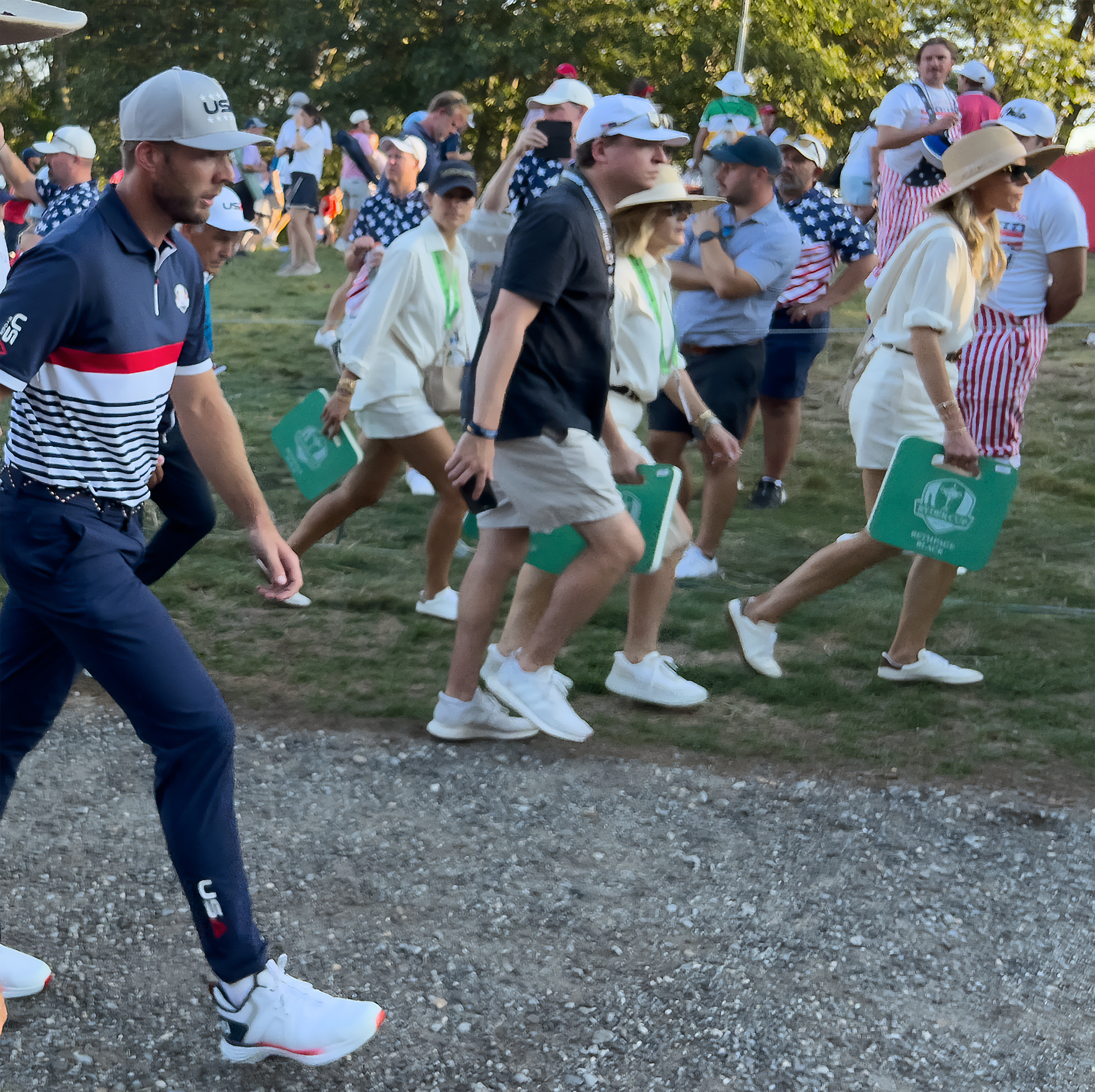 Even though my dad Bill and I were deferential to visiting European fans and respectful of Team Europe golfers, vice captains, and captain Luke Donald, the loss still hurts. So, this won’t be an in-depth recap, at least not verbally, and I won’t link to any media articles. The extensive gallery below will speak a thousand words per photo. That includes photos of players, caddies, vice captains, and captains of both teams. (St. John’s University alumnus Keegan Bradley was Team U.S.A. captain.)