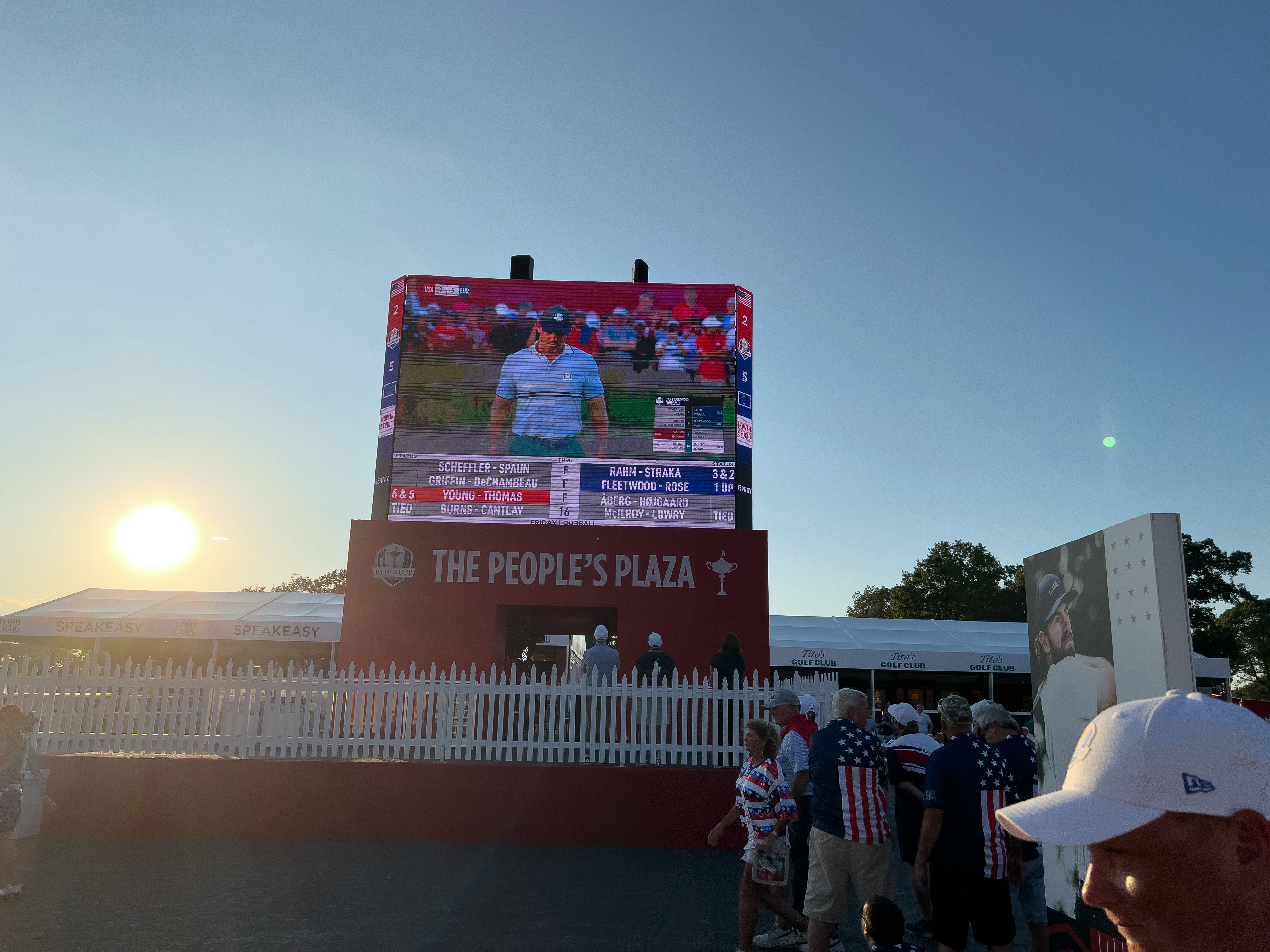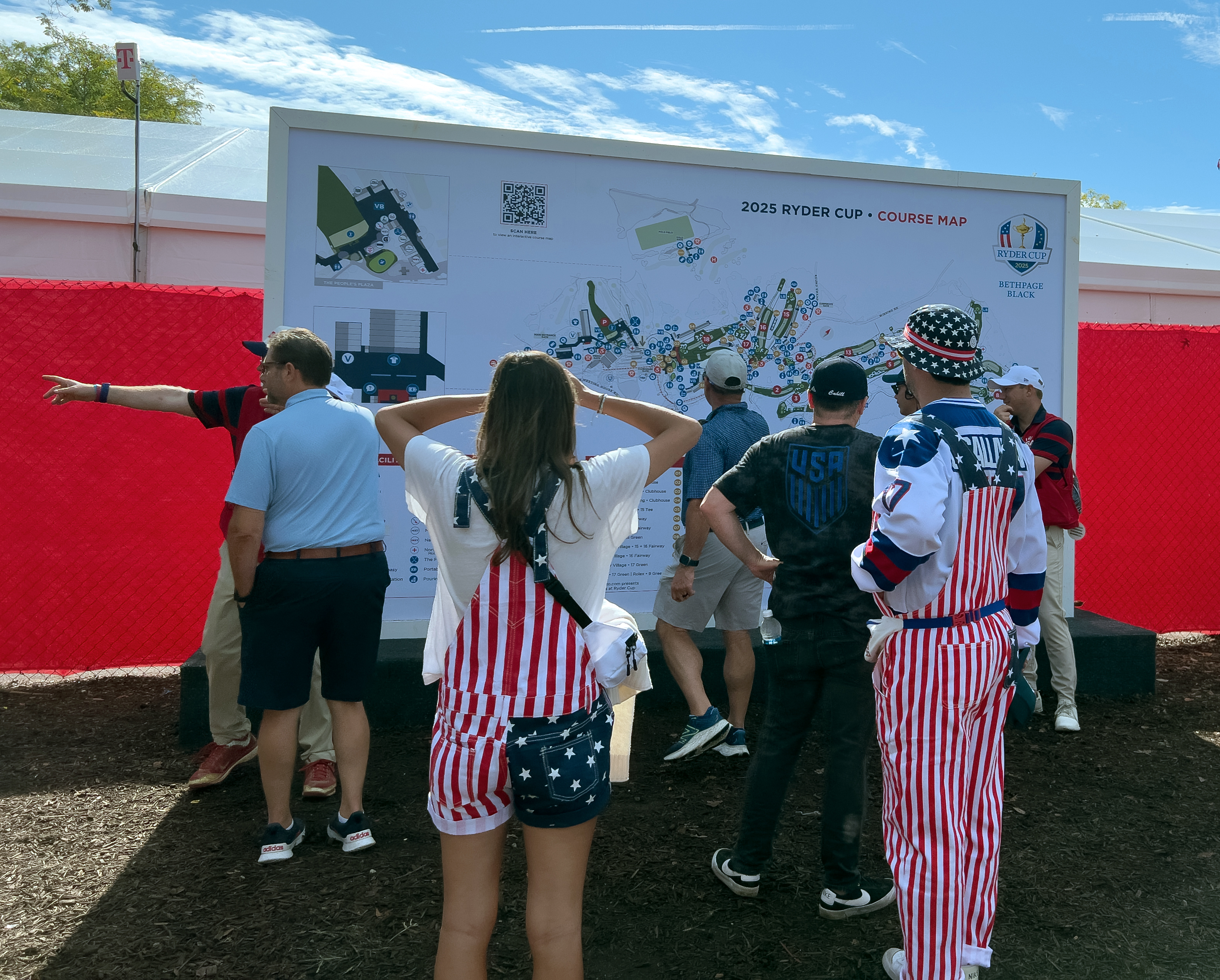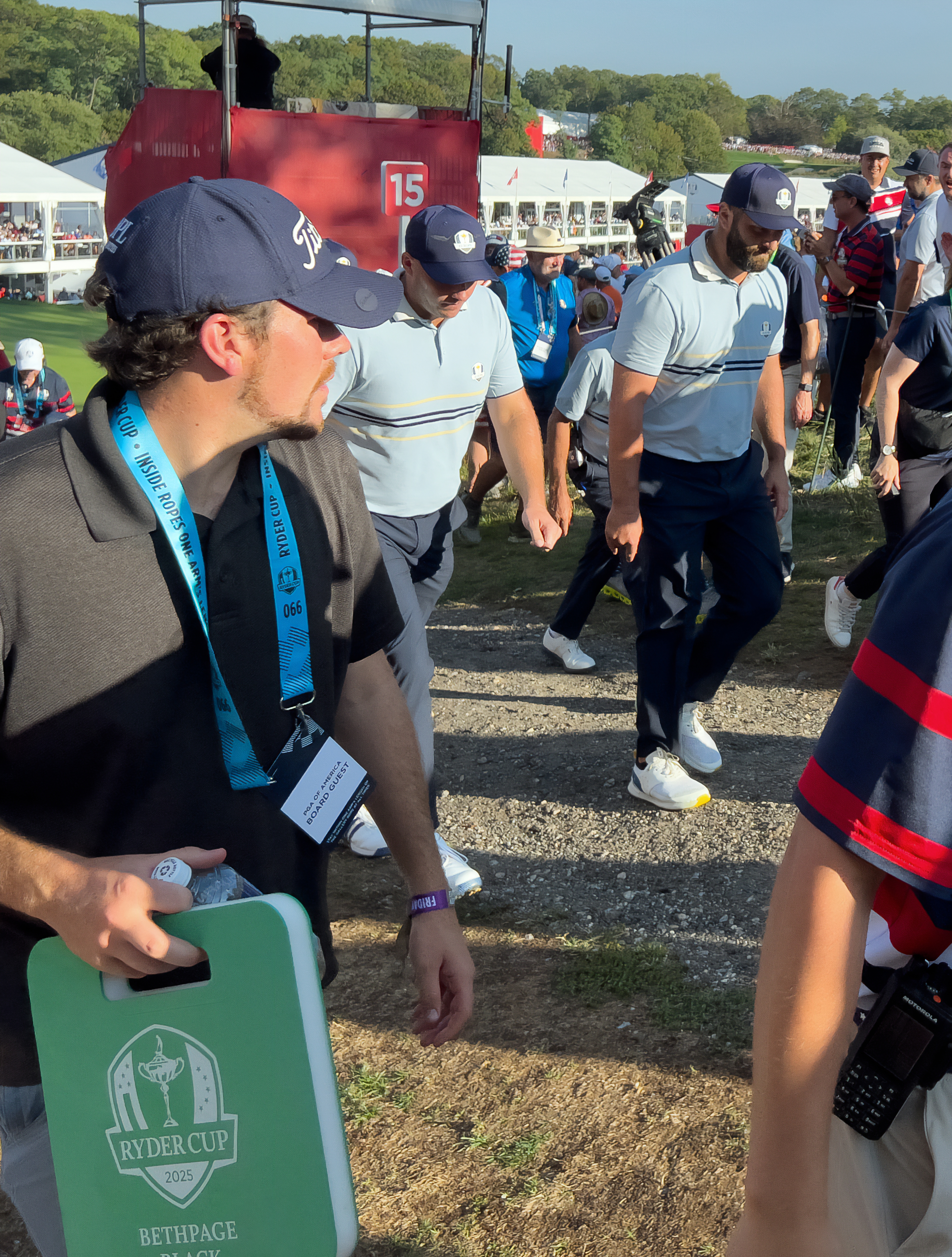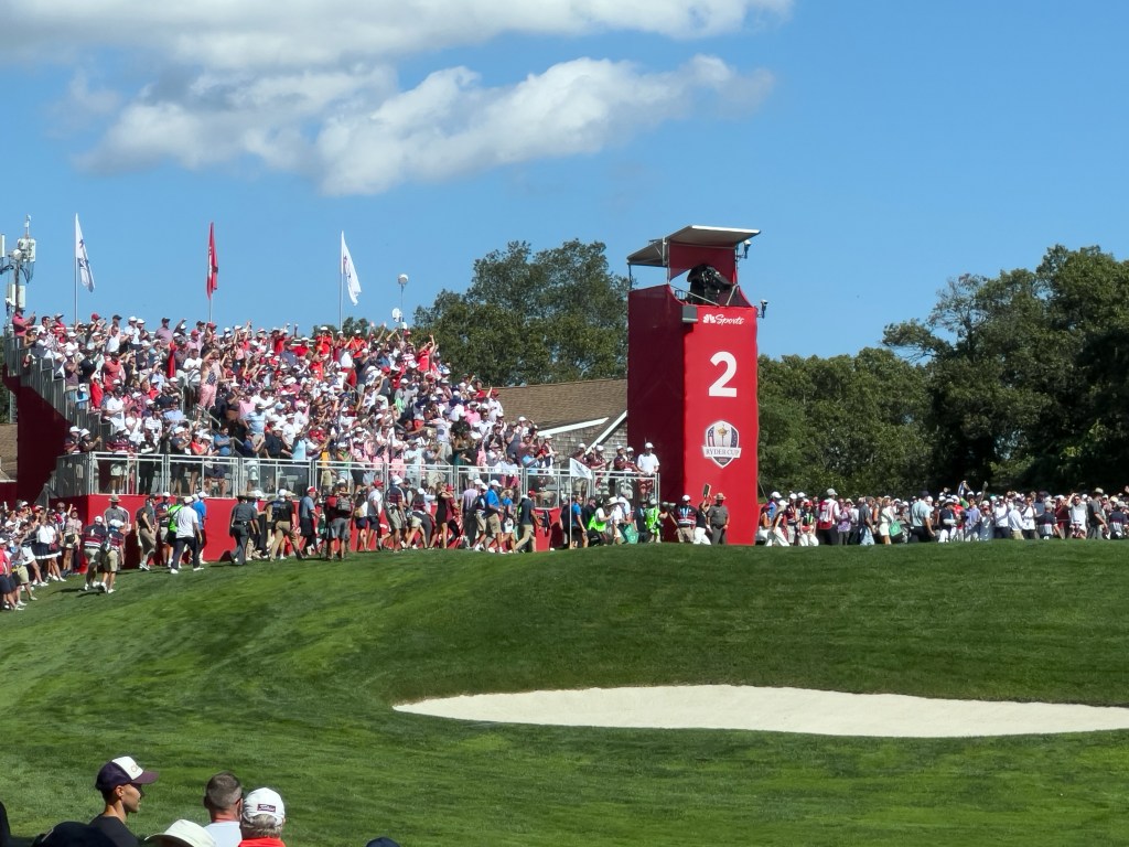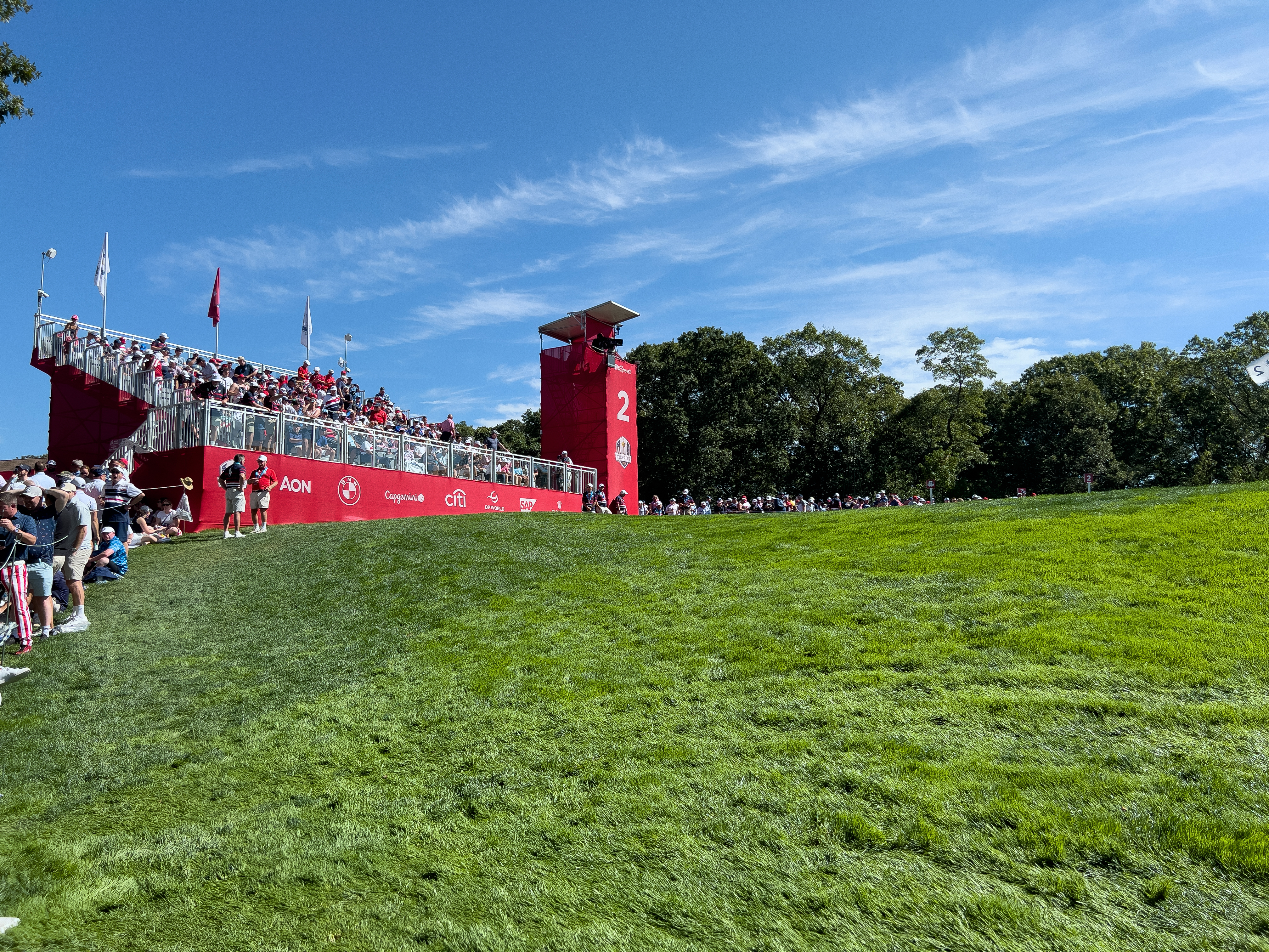Even though my dad Bill and I were deferential to visiting European fans and respectful of Team Europe golfers, vice captains, and captain Luke Donald, the loss still hurts. So, this won’t be an in-depth recap, at least not verbally, and I won’t link to any media articles. The extensive gallery below will speak a thousand words per photo. That includes photos of players, caddies, vice captains, and captains of both teams. (St. John’s University alumnus Keegan Bradley was Team U.S.A. captain.)