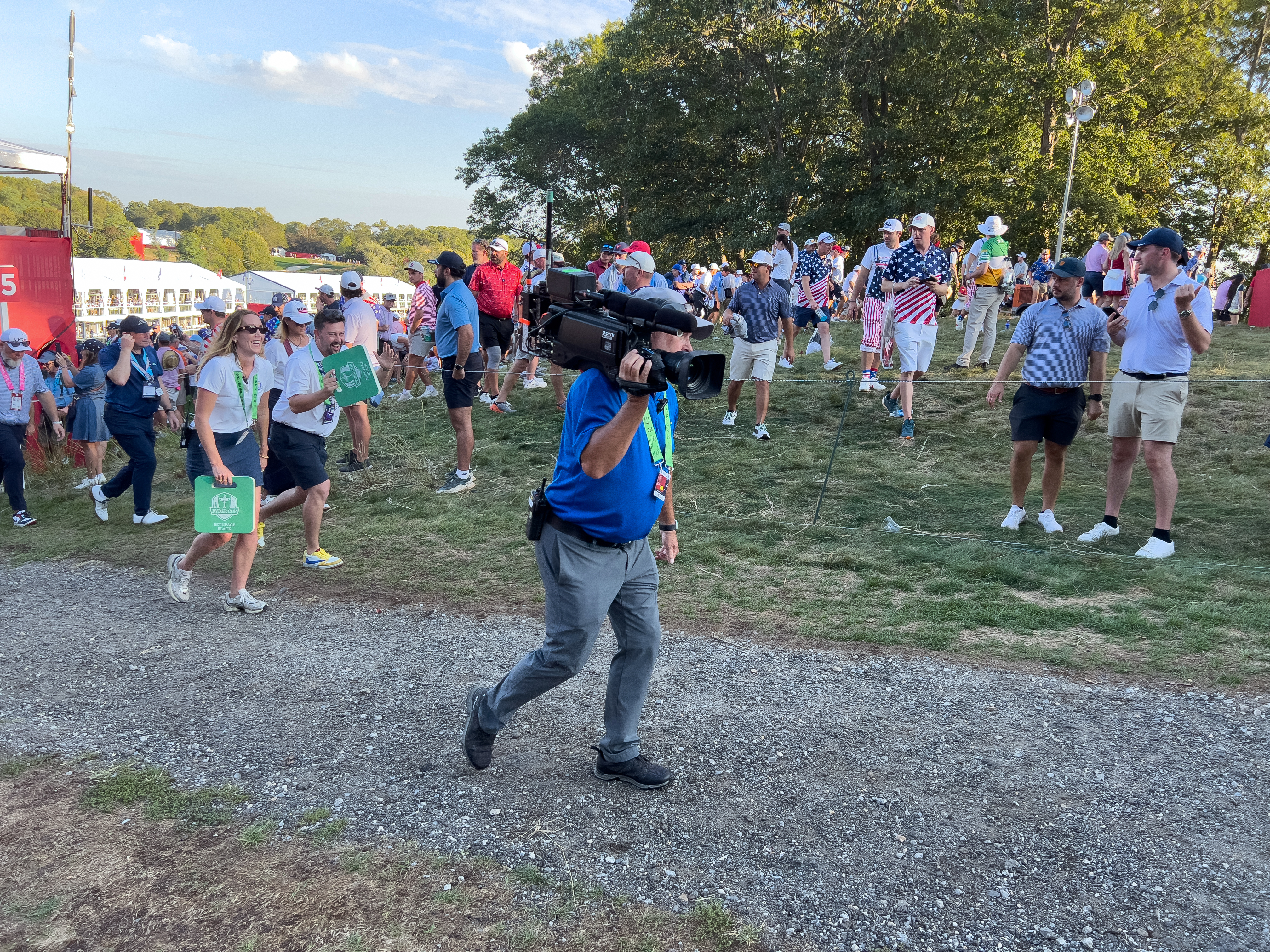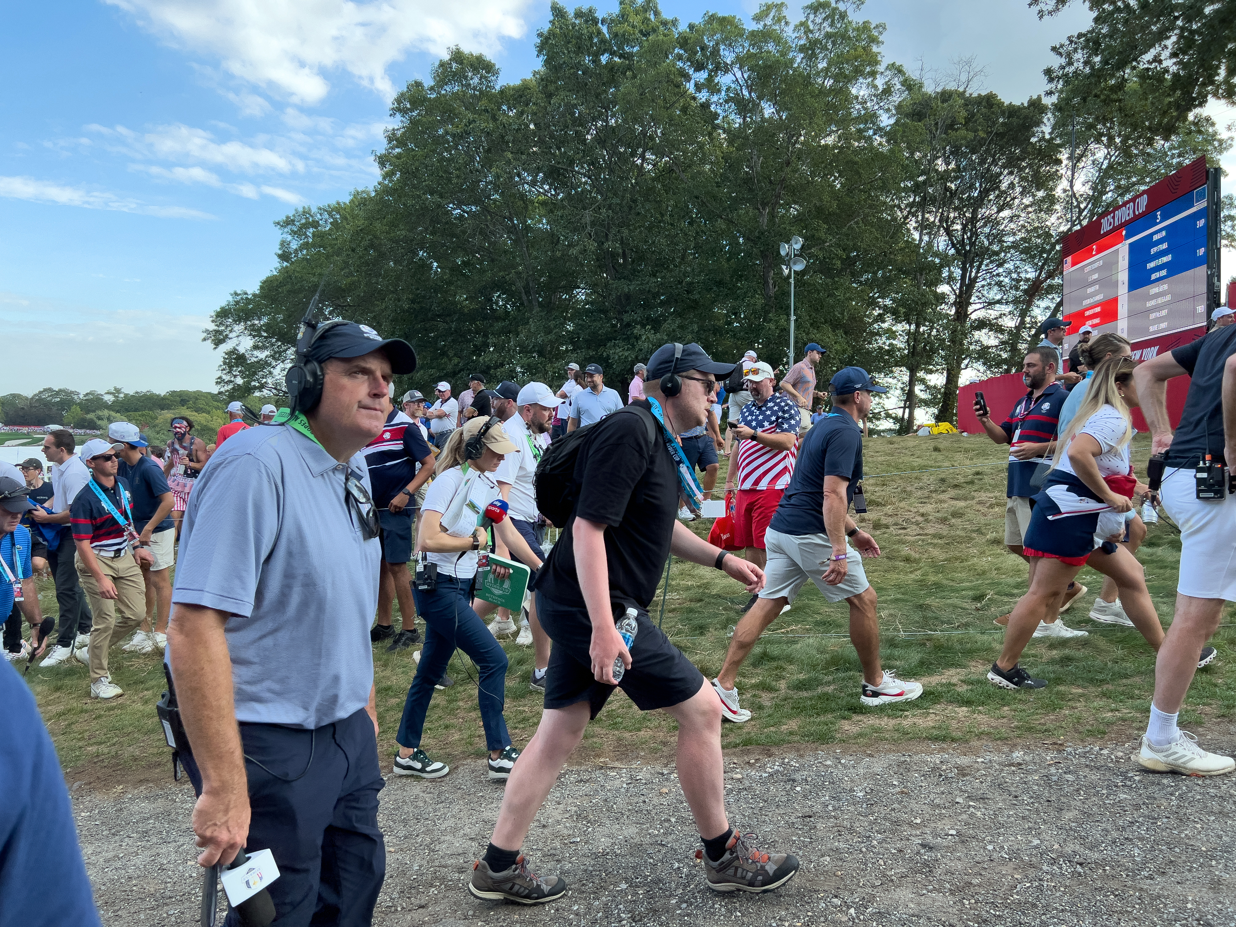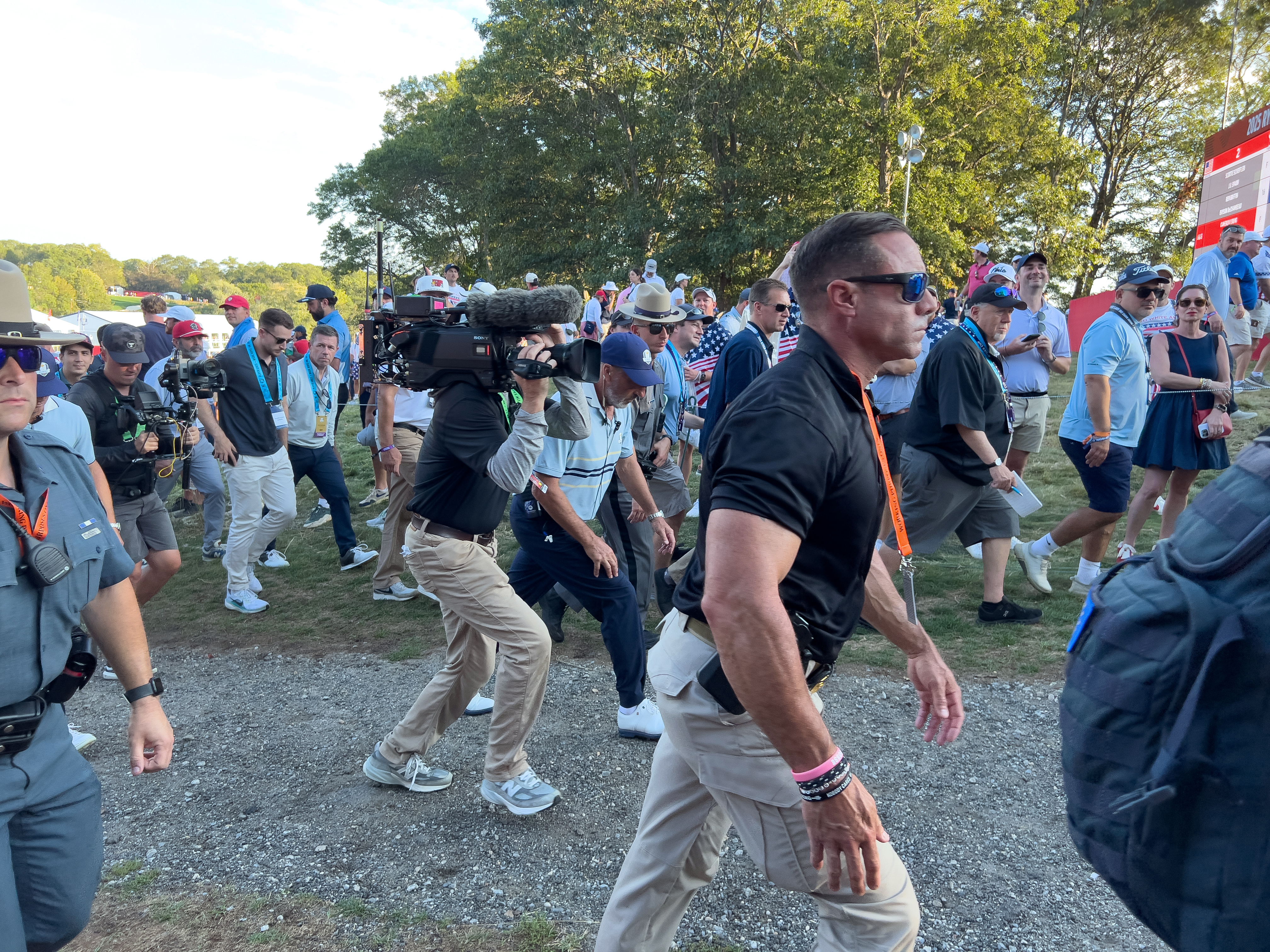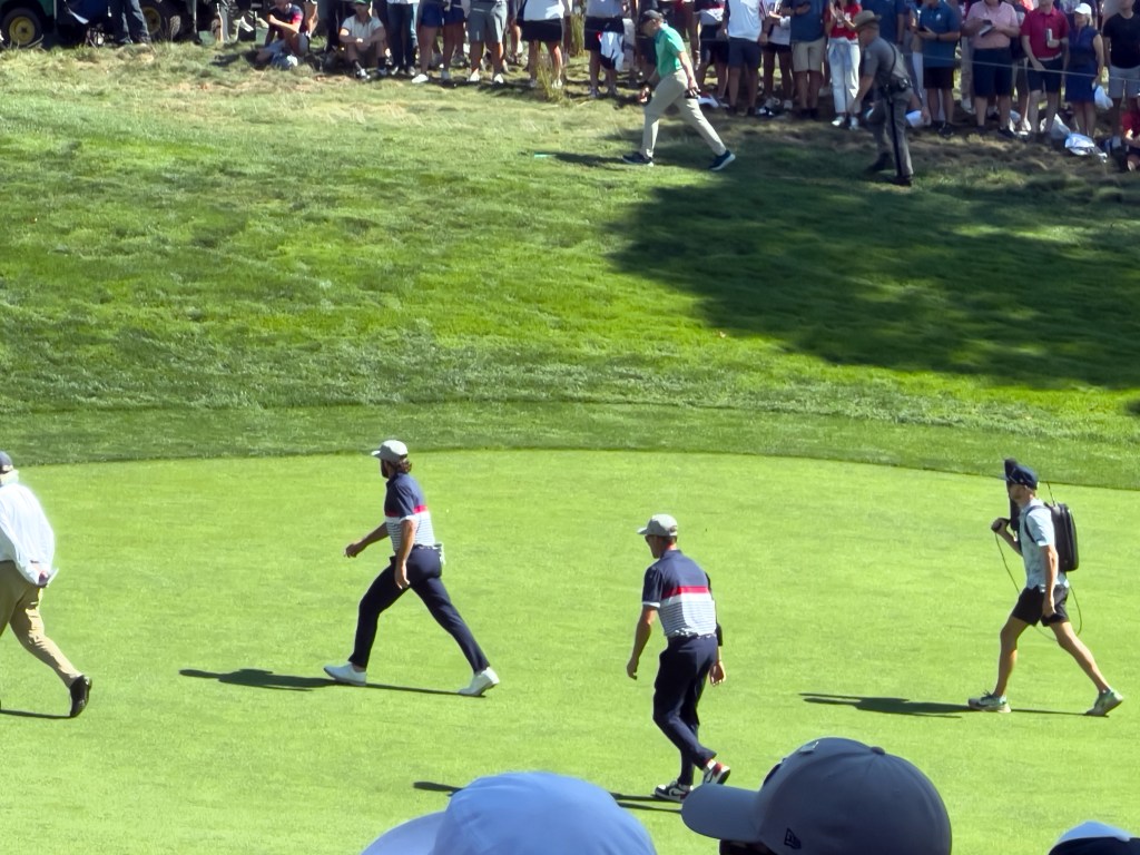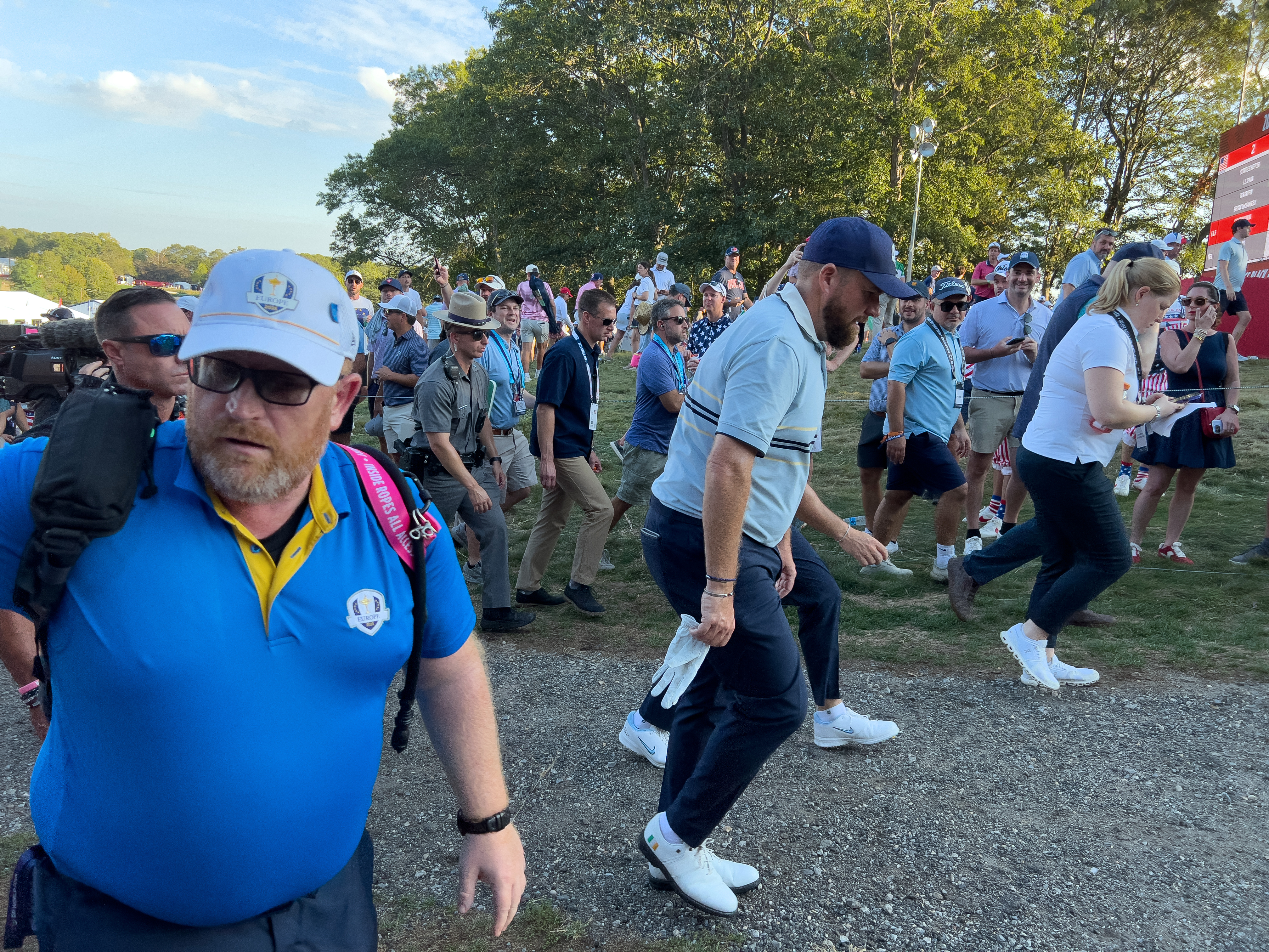 Even though my dad Bill and I were deferential to visiting European fans and respectful of Team Europe golfers, vice captains, and captain Luke Donald, the loss still hurts. So, this won’t be an in-depth recap, at least not verbally, and I won’t link to any media articles. The extensive gallery below will speak a thousand words per photo. That includes photos of players, caddies, vice captains, and captains of both teams. (St. John’s University alumnus Keegan Bradley was Team U.S.A. captain.)