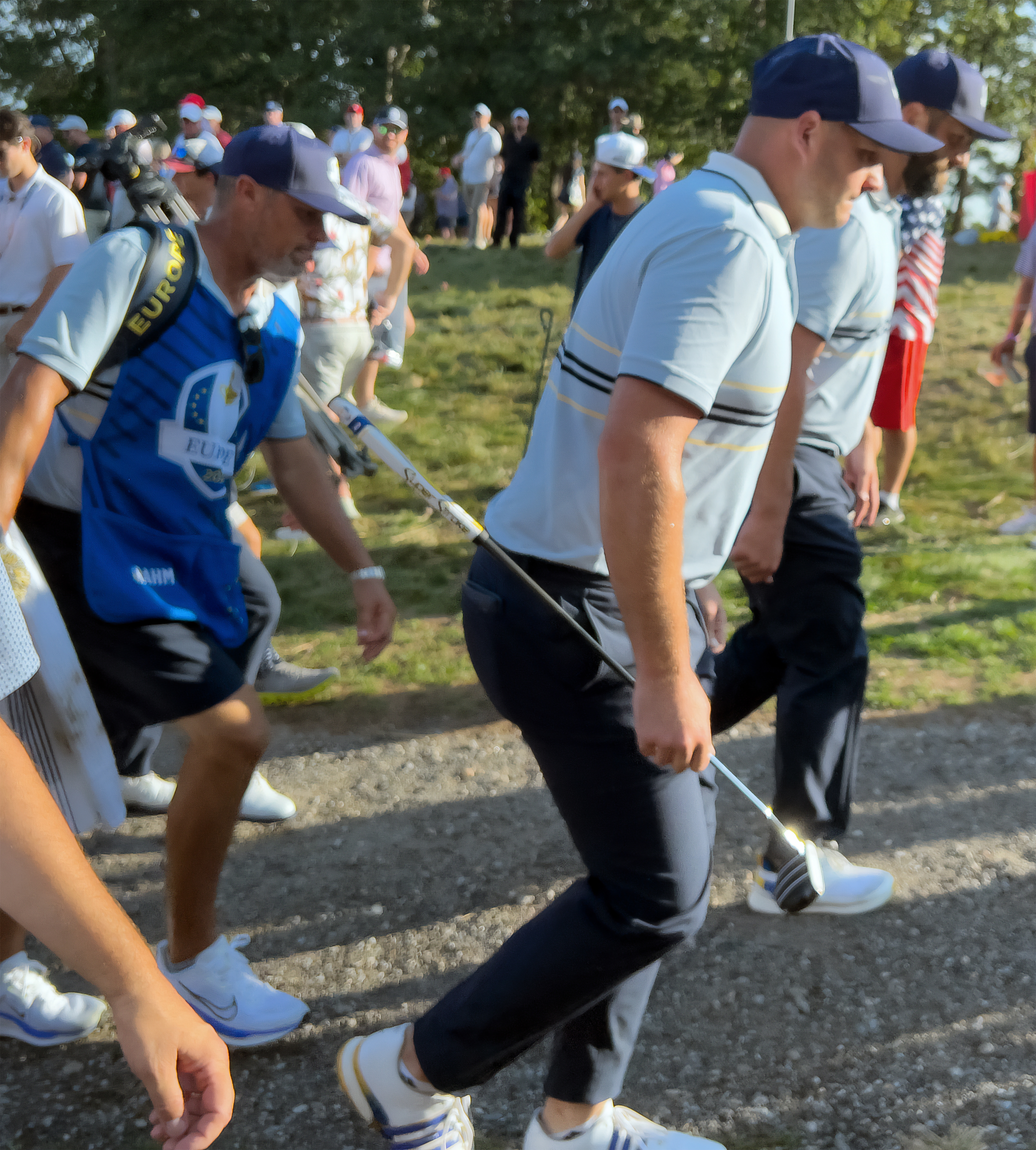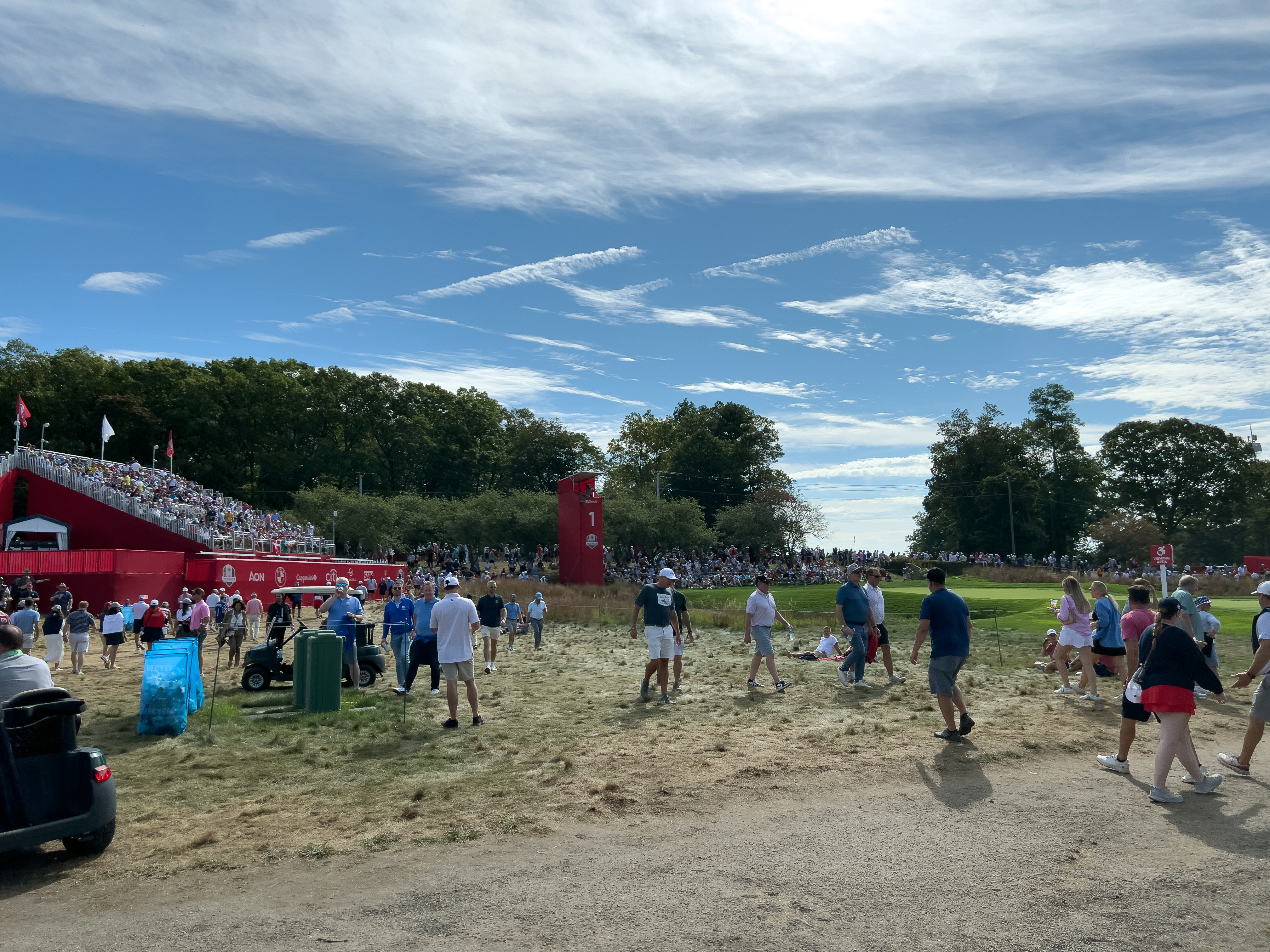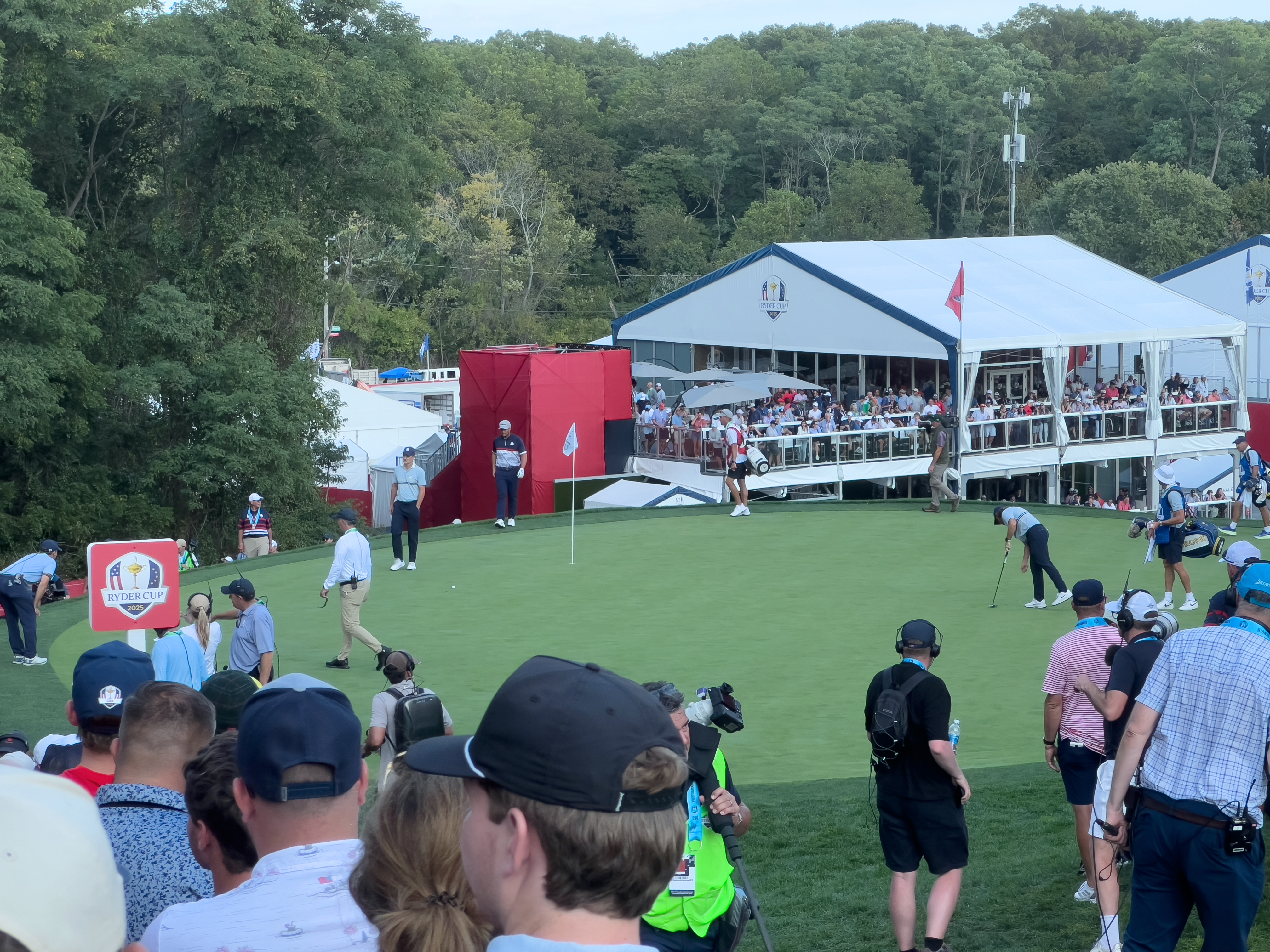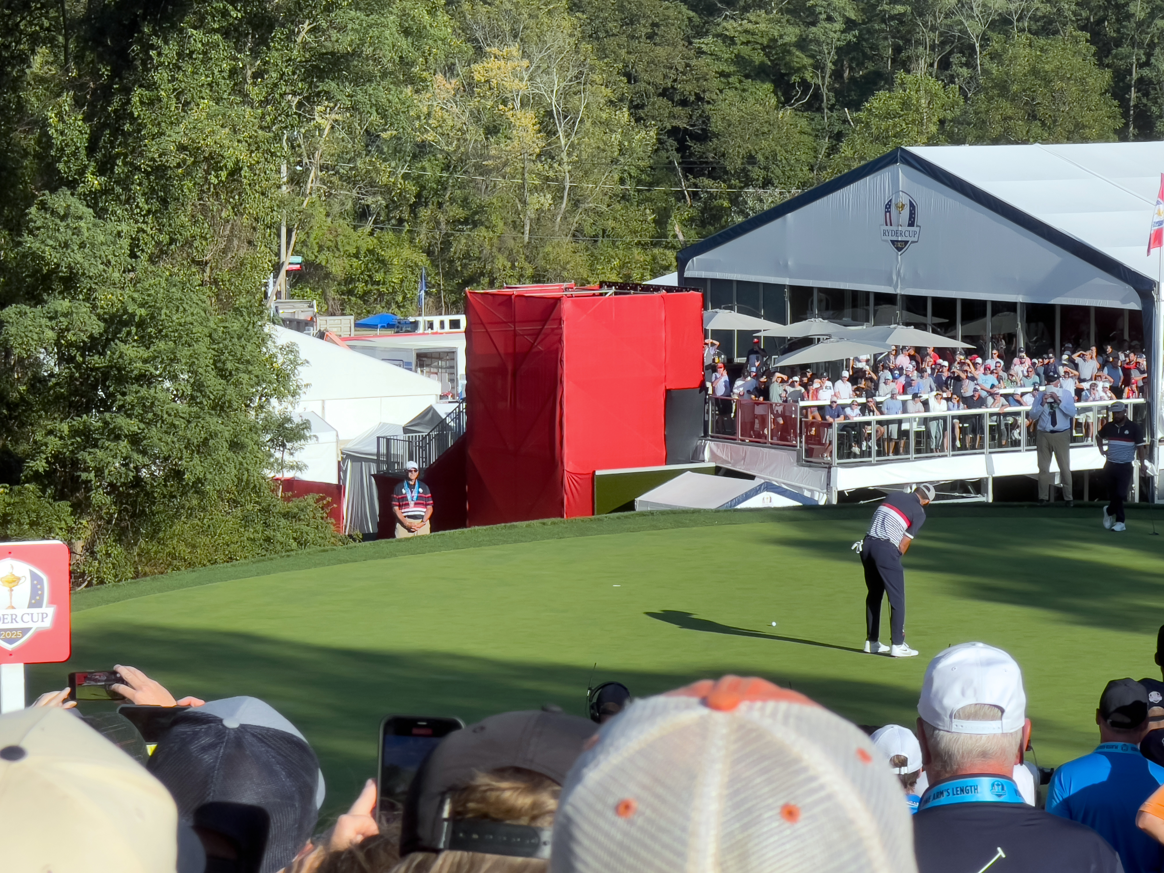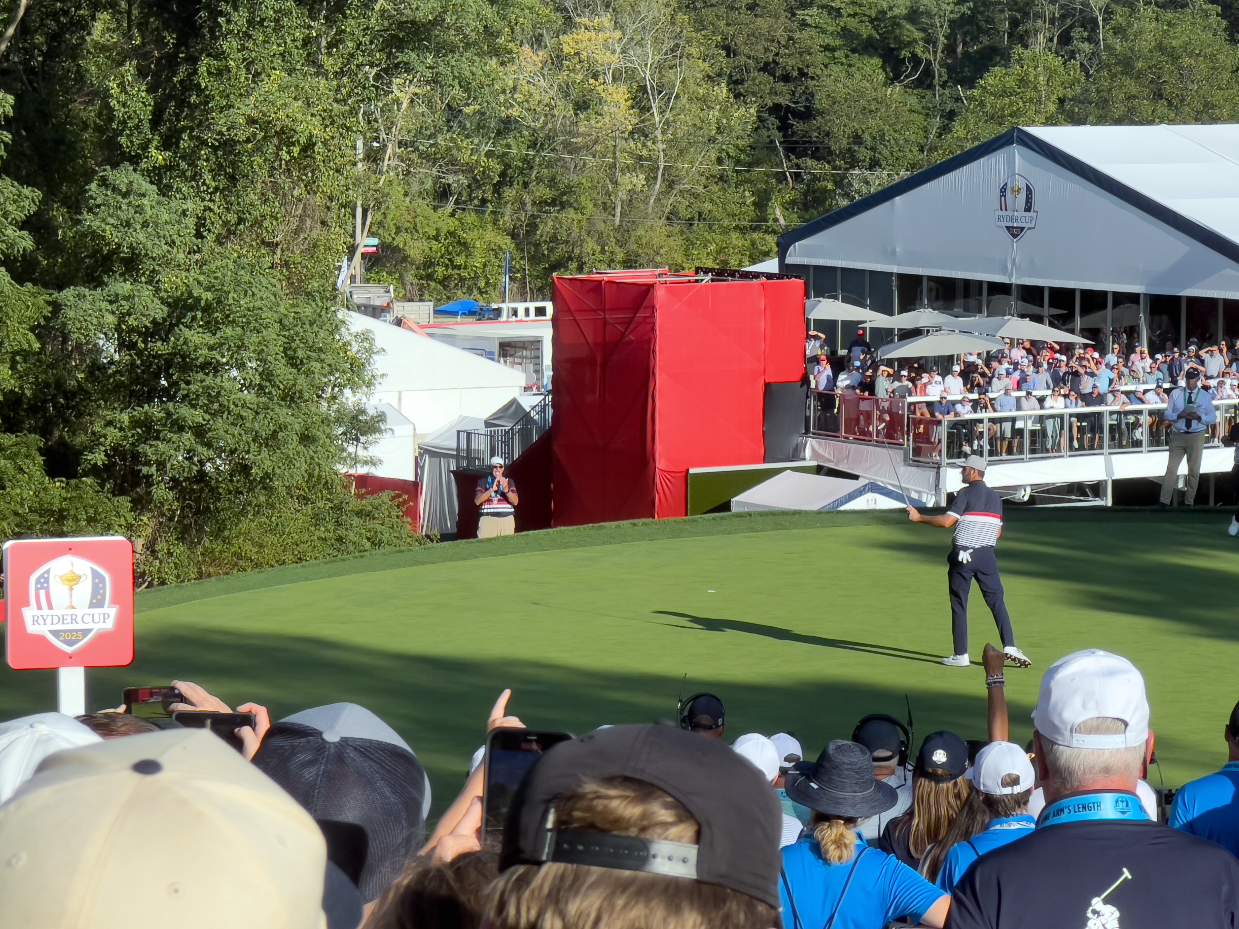 I said my dad and I were deferential to any European fans we encountered and were respectful of Team Europe. (My dad’s friend Mike even worked as an attendant in Team Europe’s locker room.) If only every fan was the same. The arrogant harangues by some U.S. fans, not all of them drunk, made me wince. Team member Sepp Straka moved from Vienna, Austria, to Valdosta, Georgia, when he was 14, played for the University of Georgia, and talks like a native southerner. Didn’t matter to those fans. I feel the harangues played a karmic role in Team Europe’s win. I’ll keep what/whom I feel also played a karmic role to myself. Inside the ropes, however, Team Europe was just better. Full stop. (“Period” is a U.S. thing.)