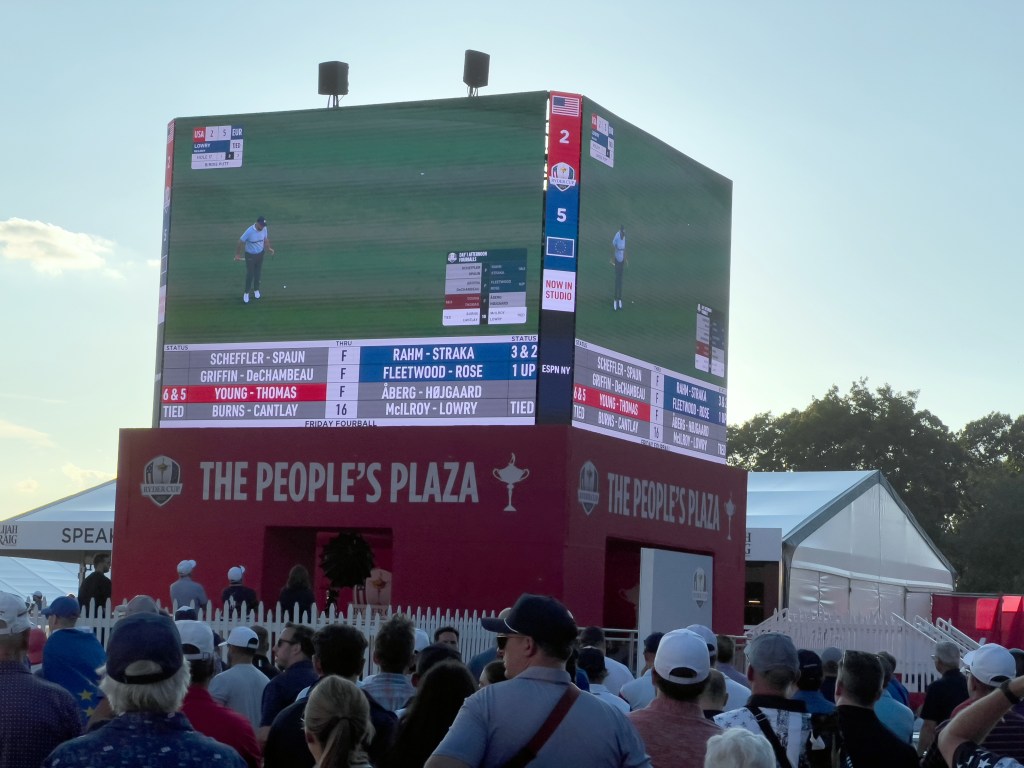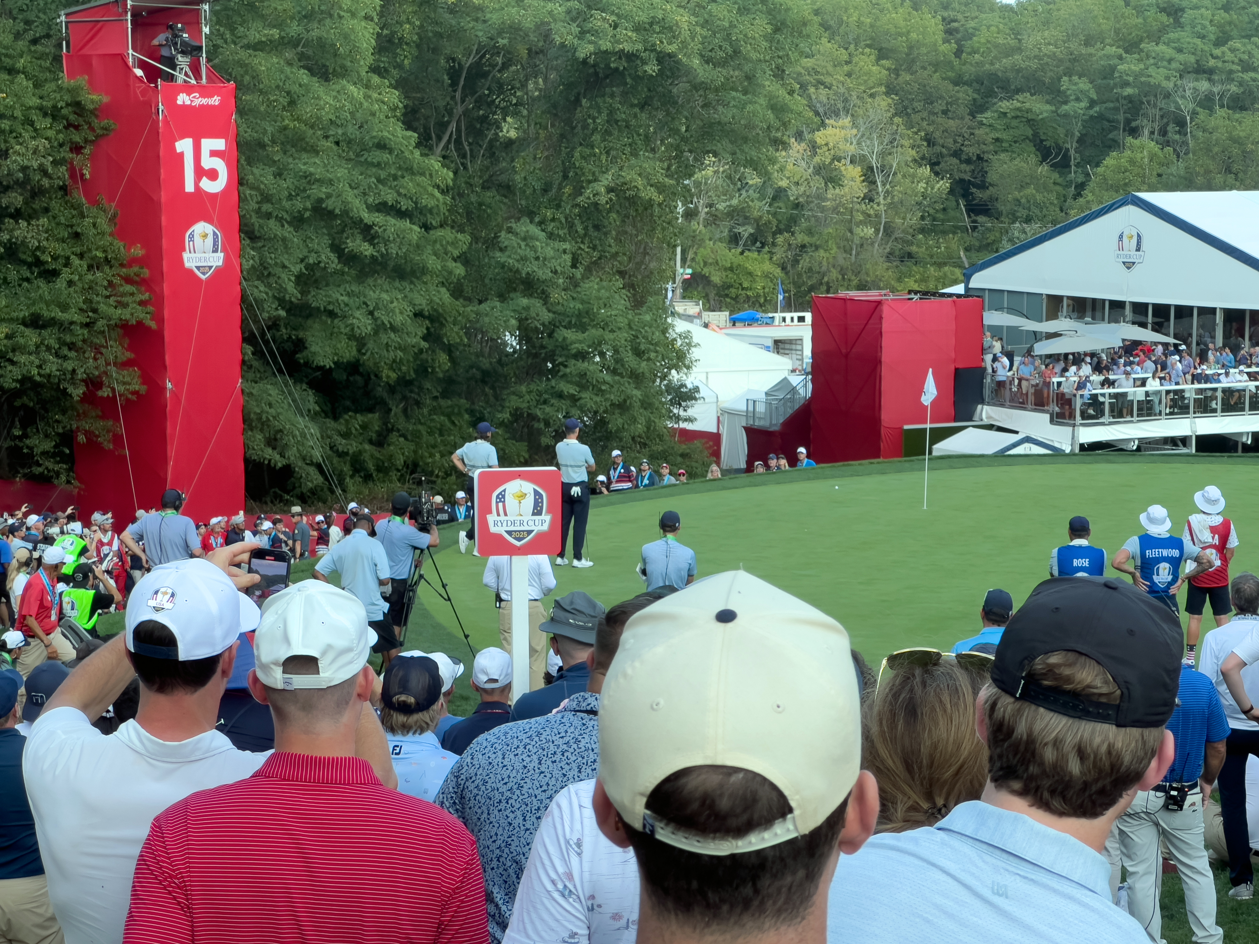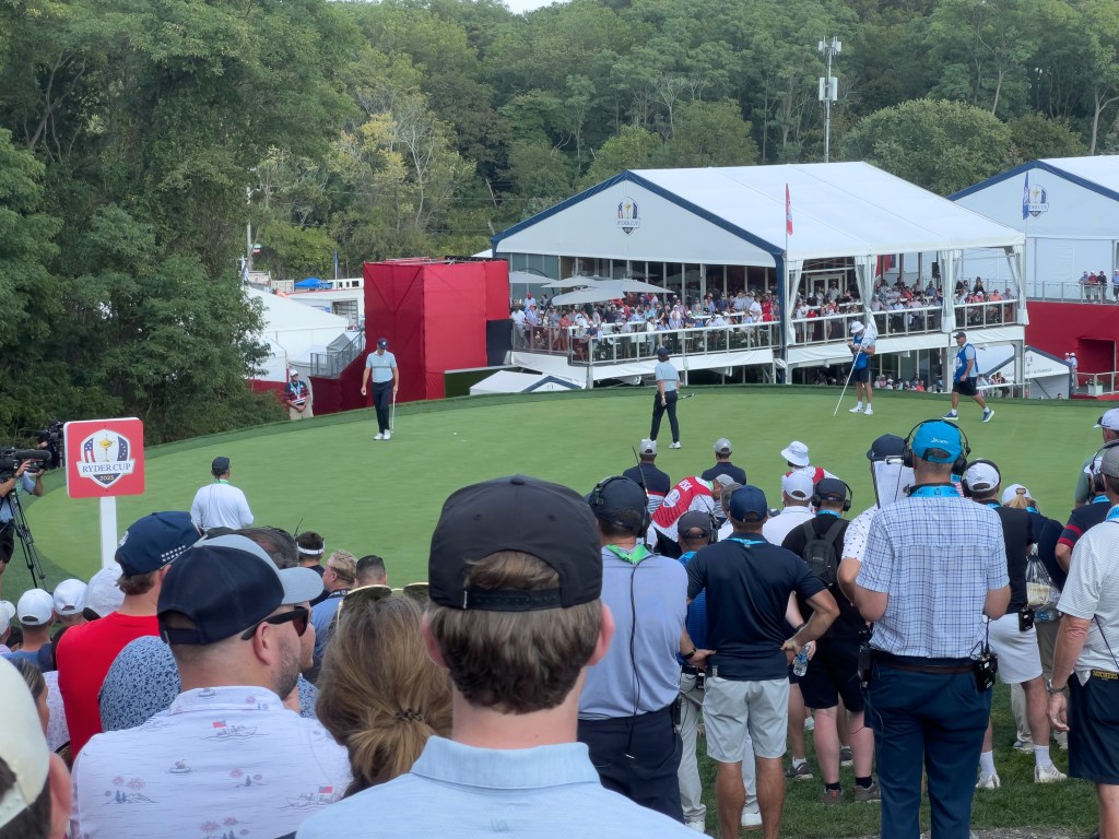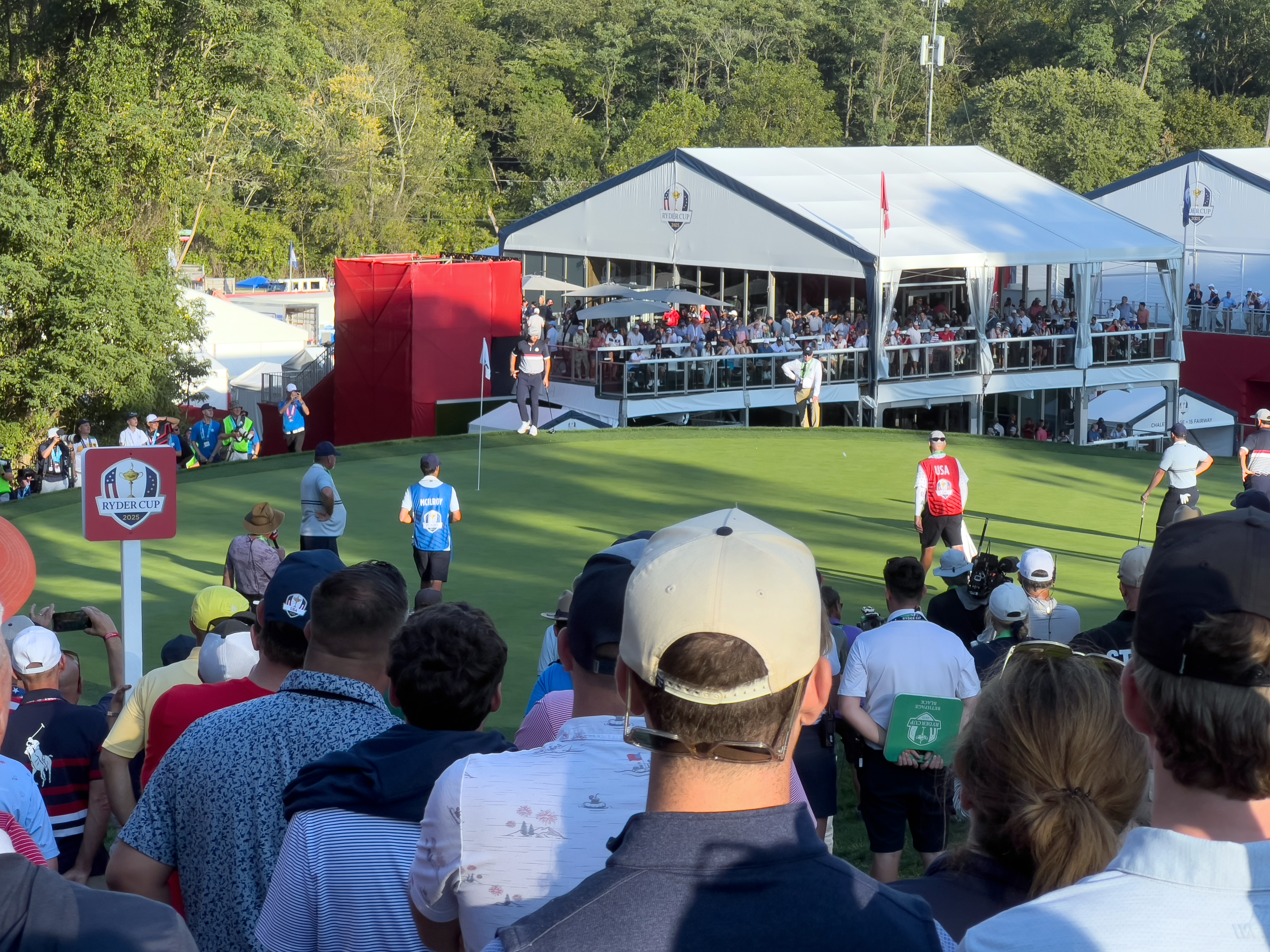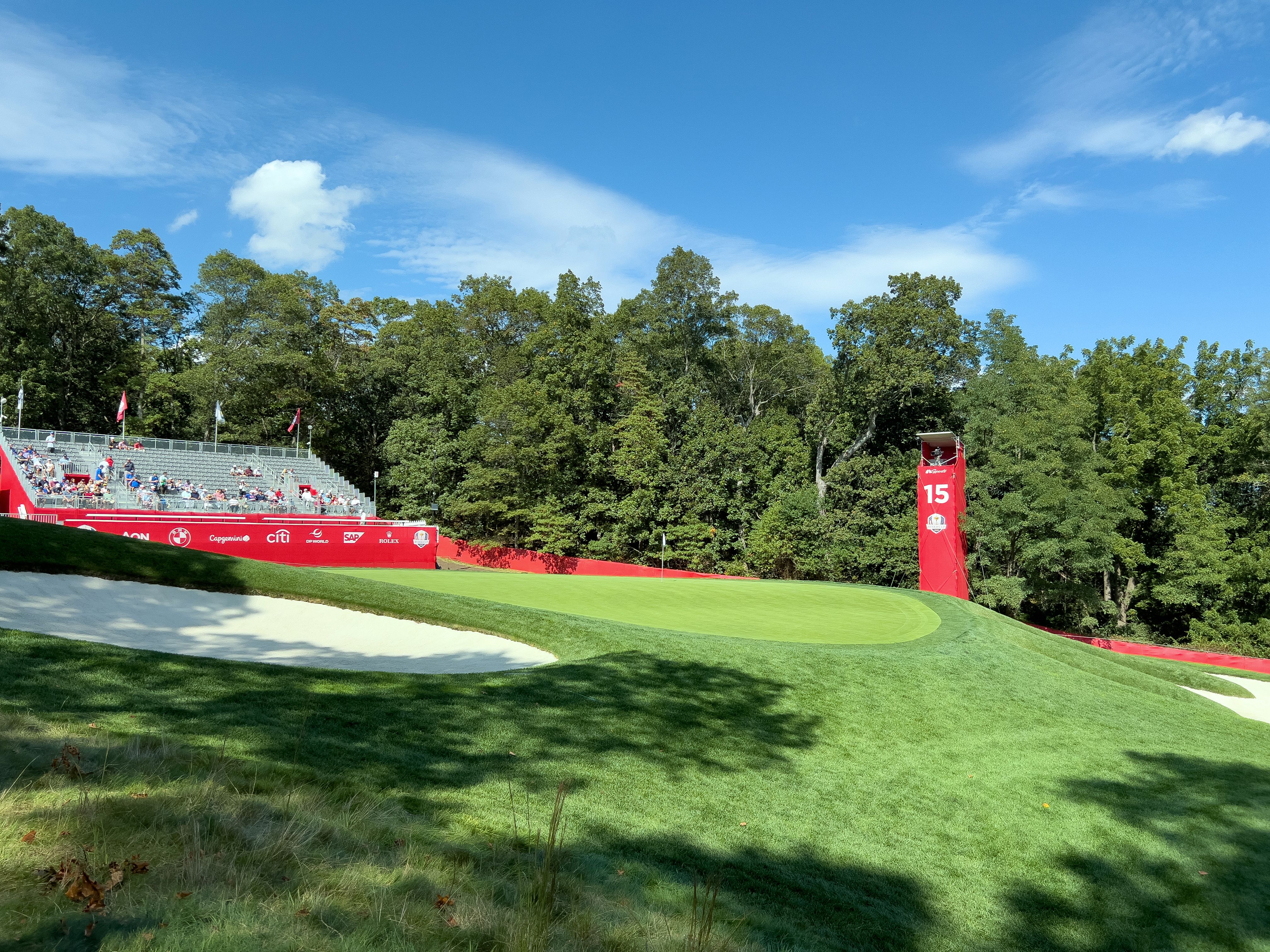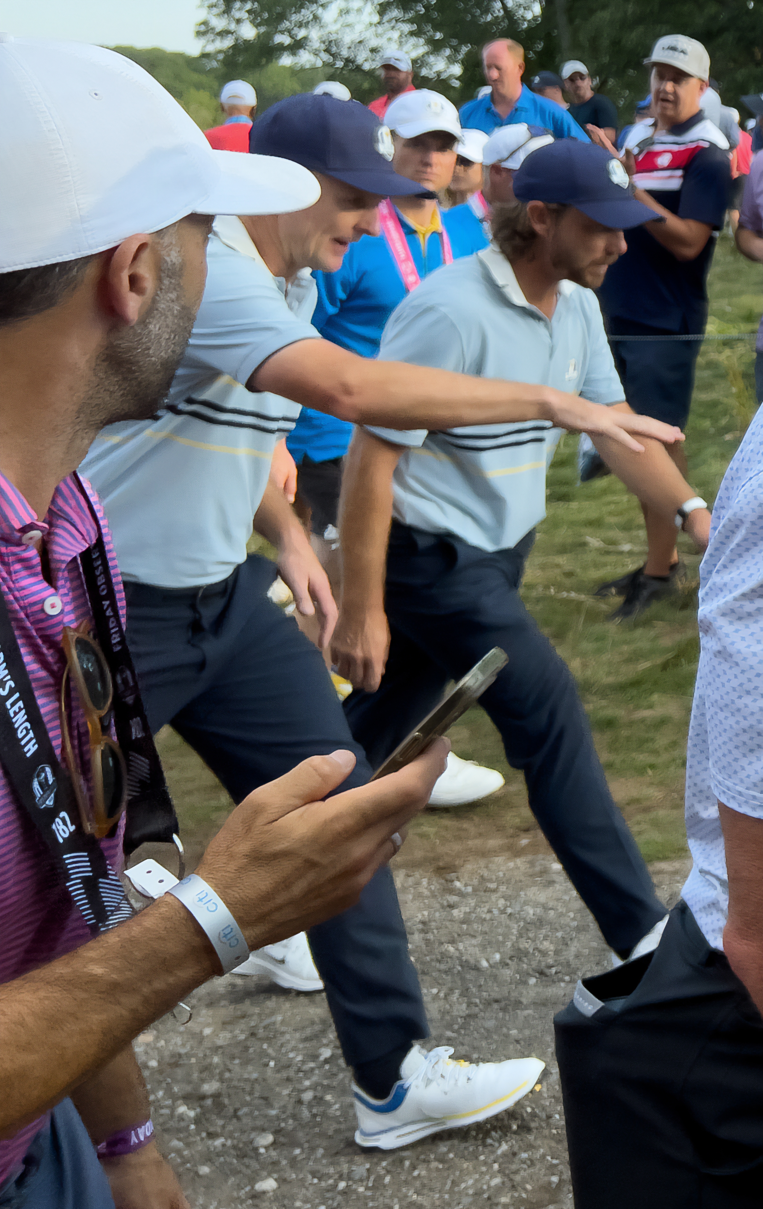 I said my dad and I were deferential to any European fans we encountered and were respectful of Team Europe. (My dad’s friend Mike even worked as an attendant in Team Europe’s locker room.) If only every fan was the same. The arrogant harangues by some U.S. fans, not all of them drunk, made me wince. Team member Sepp Straka moved from Vienna, Austria, to Valdosta, Georgia, when he was 14, played for the University of Georgia, and talks like a native southerner. Didn’t matter to those fans. I feel the harangues played a karmic role in Team Europe’s win. I’ll keep what/whom I feel also played a karmic role to myself. Inside the ropes, however, Team Europe was just better. Full stop. (“Period” is a U.S. thing.)