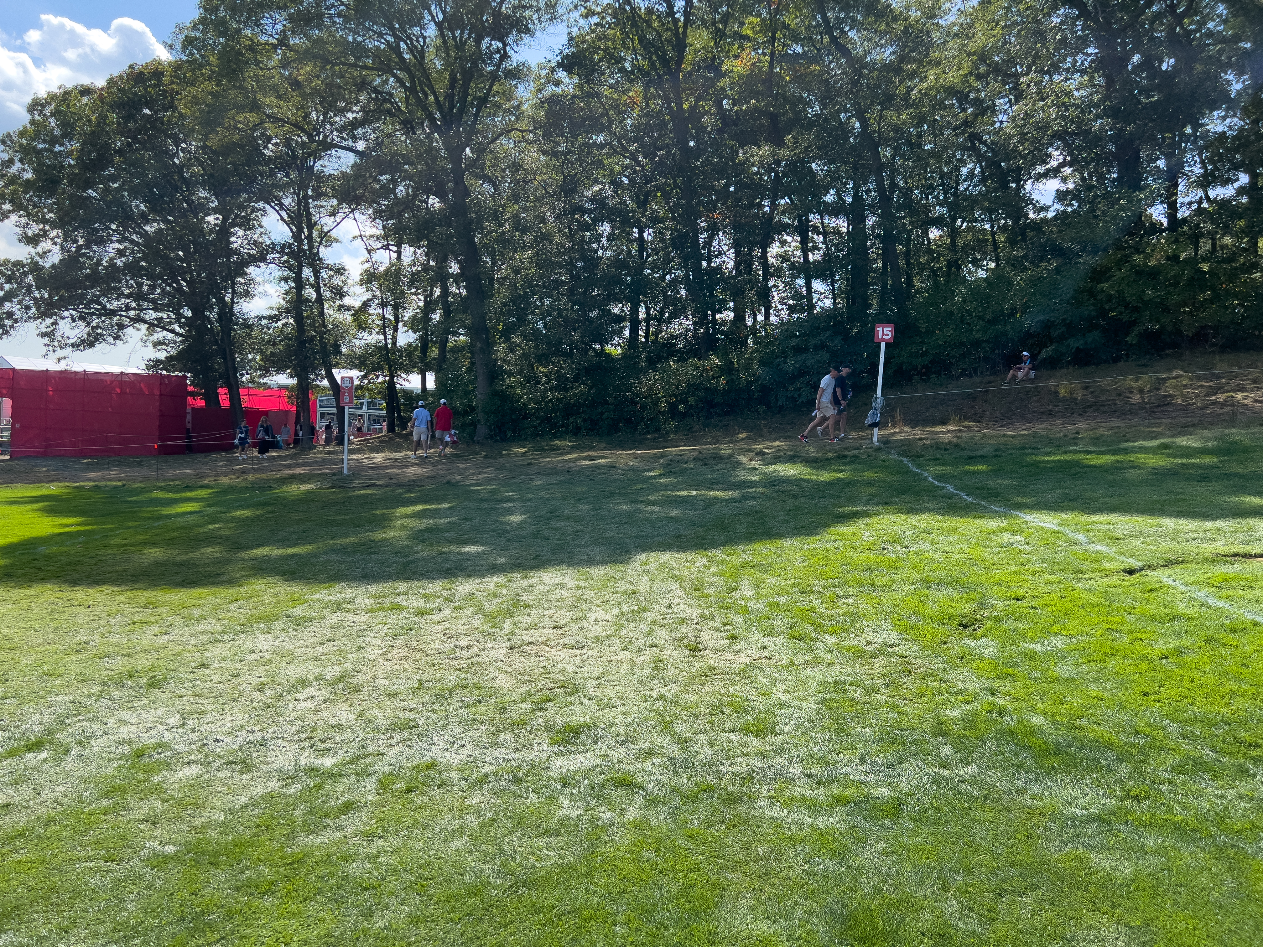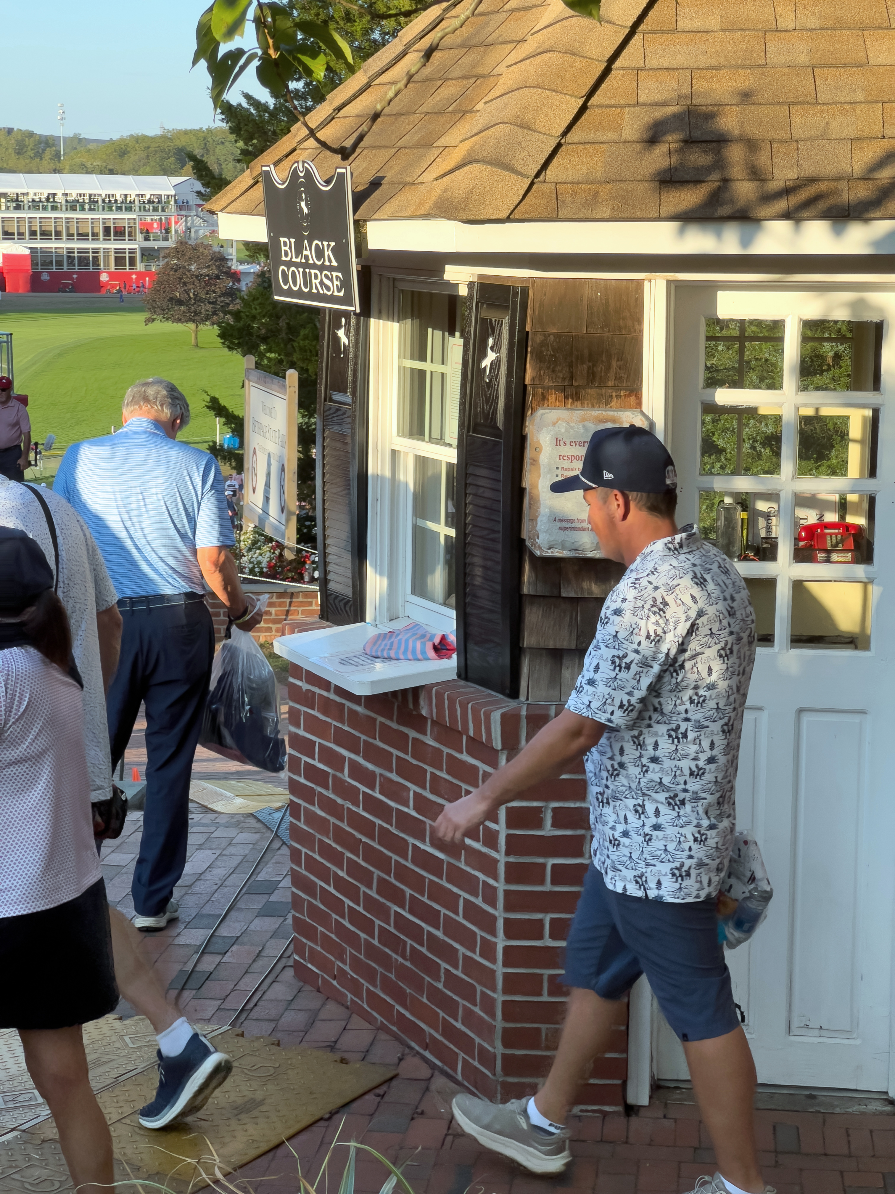 Food and non-alcoholic drinks were free! Dad and I ate lunch before going to the 2nd fairway and then I had dessert before we waited between the 15th green and 16th tee. I washed down each meal (cheeseburger, two two-packs of Grandma’s chewy chocolate chip cookies) with a can of Bubly cherry seltzer sparkling water, otherwise having two bottles of Aquafina pure water.