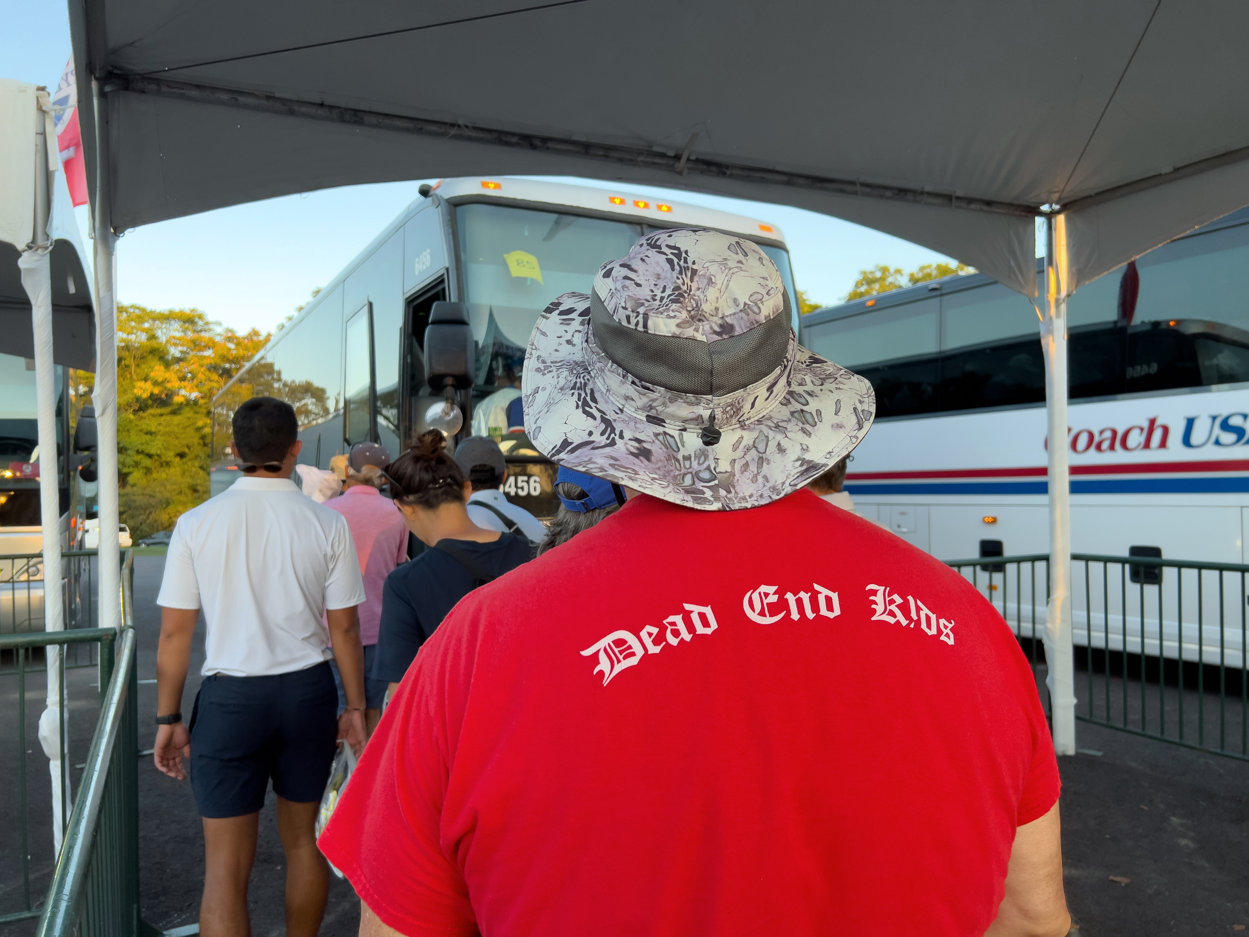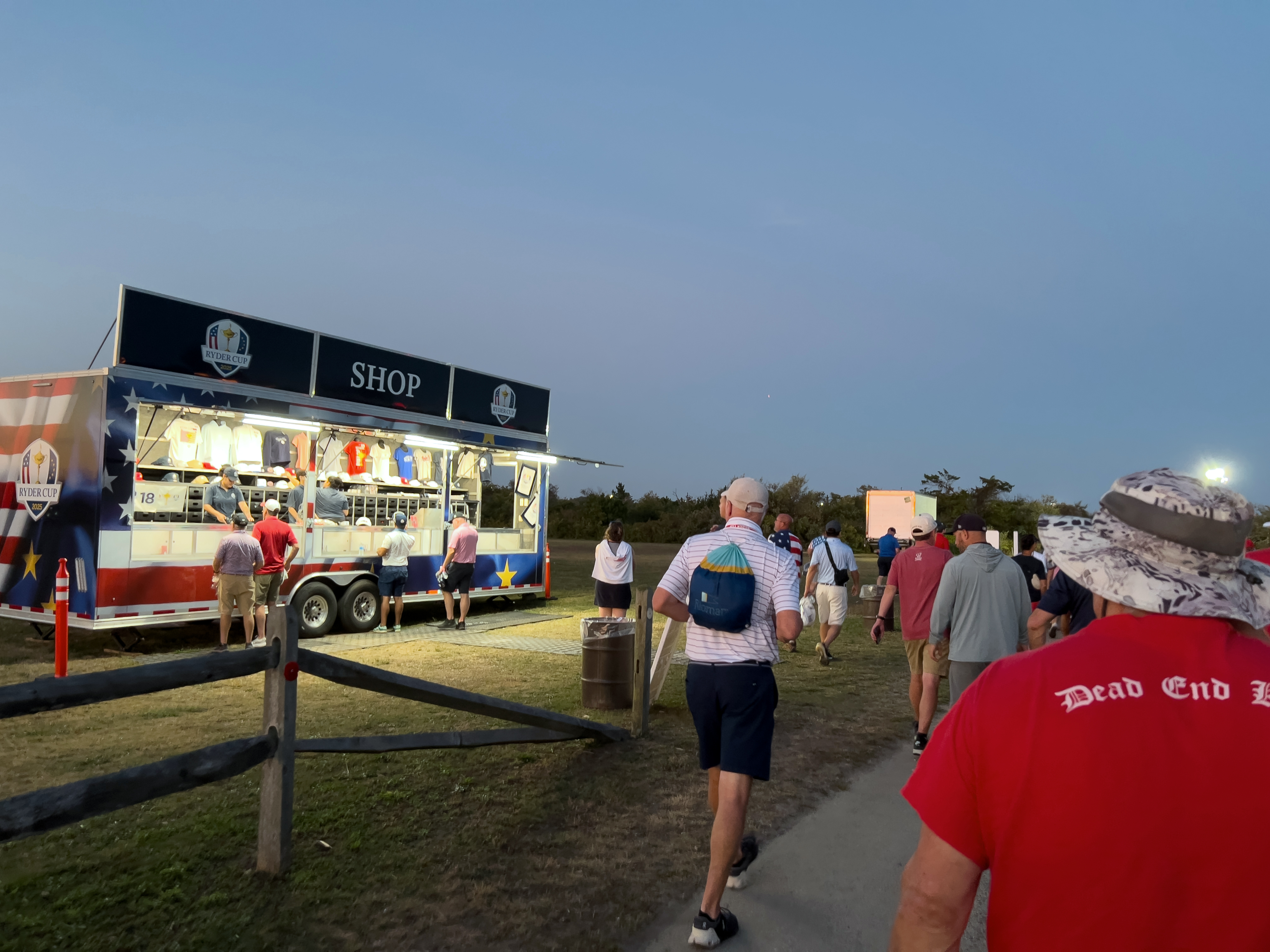 I bought one thing from The Ryder Cup Shop on the way back to the Jones Beach general parking shuttle bus: a screenprint pin flag. I’ve gotten one for each major event at Bethpage Black and hung it on my wall. Even in defeat, I’m keeping it up.