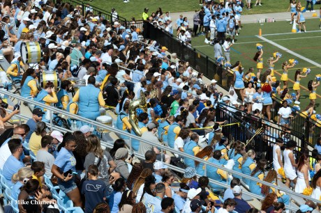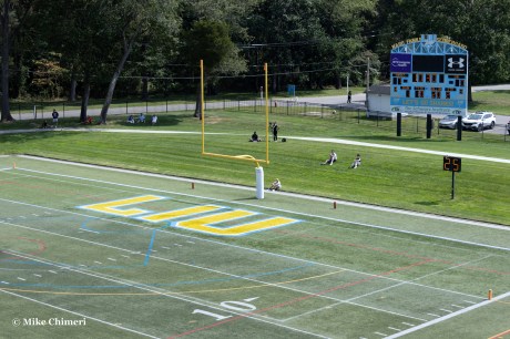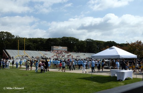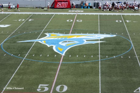 After editing what I’d airchecked so far, my mom drove me up to LIU Post half an hour later than Friday. We had to clear a security checkpoint before reaching the parking lot by WCWP. I unpacked and walked toward Shark Stadium (no naming rights this year) for photos around and above the field.
