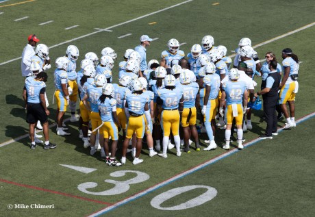 The centerpiece of the weekend was the LIU Sharks football team‘s Homecoming game (and home opener) against the Sacred Heart Pioneers. (That was the LIU Post team name before the Post and Brooklyn athletic programs merged and moved from NCAA Division II to Division I.)