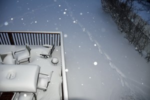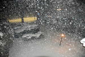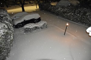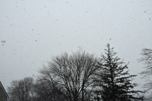 The first snowflakes fell at around 8PM on Sunday, January 31. I took this photo at 8:05 before going to bed: