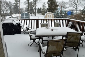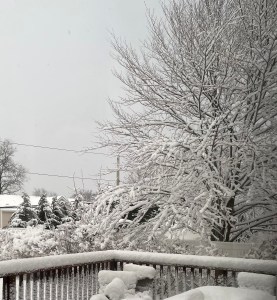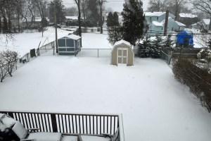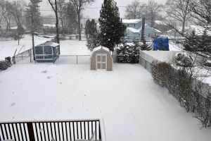 My dad Bill took these backyard photos from the back door at 4:54 while the snow was winding down: