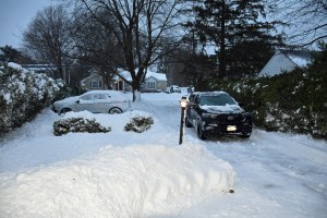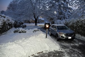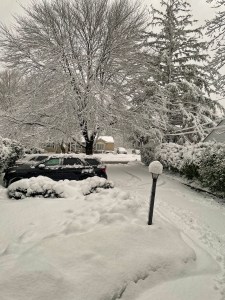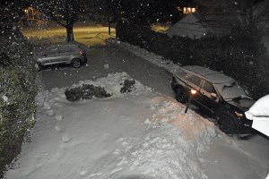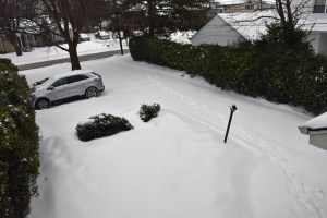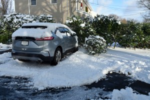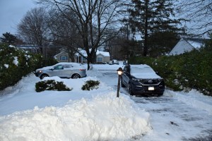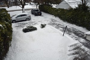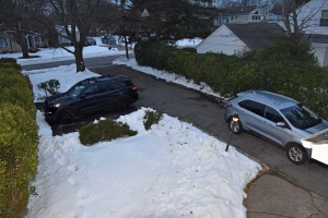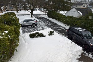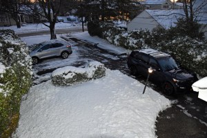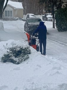 For the second storm in a row, I initially felt I had wasted my time shoveling. Snow re-intensified as I shoveled and it re-accumulated. My goal was to shovel a path from my dad Bill’s car on the side of the driveway to the front door. But when he came home around 4:00, he had to park in the road. The snow I had left for the snow blower to get was too high. I wasn’t sure if he’d use the blower right away, but work began at 4:25: