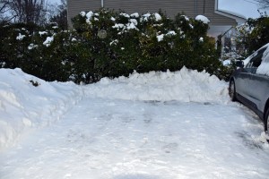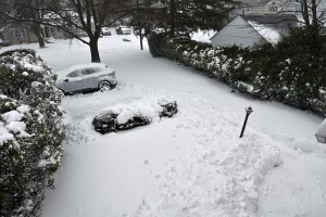 It took 30 minutes to clear all that snow. Now, Dad was able to move his car into the driveway: