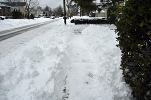 The snow was too dense for me to shovel entirely, so I gave up after about 20 minutes. I felt defeated, and said as much on Facebook, but was reassured by my friends and Dad. These photos were taken at 12:44 PM: