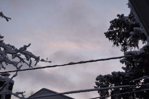 My Tuesday proceeded from there. Wet snow showers came in the afternoon, but didn’t accumulate. I did a little more shoveling around 4:00, taking this indoor photo at 4:37: