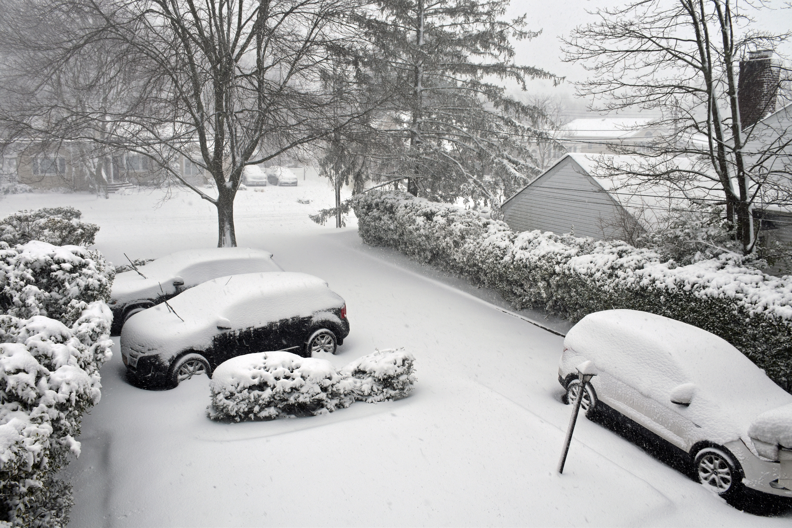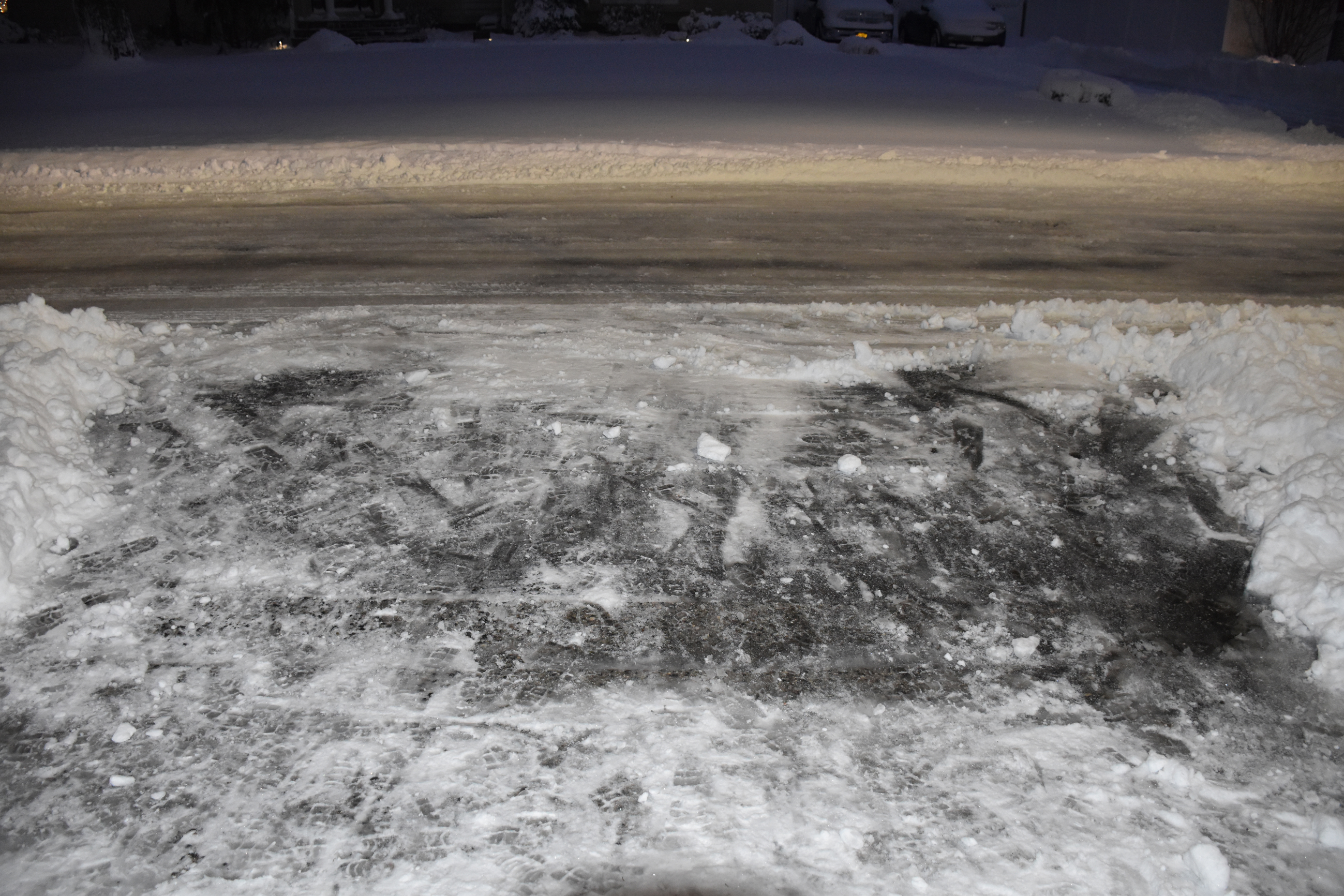 2:05 PM, after my mother shoveled what was underneath her car and my father’s car: