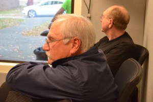 In the lower right window of the press box are Neil Marks, Jeff Kroll, Dan Cox, and Pat Kroll: