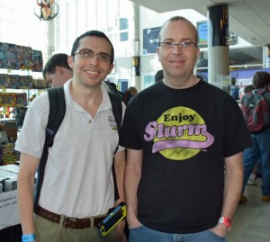 I spoke to John during the meet and greet, letting him know that like his son, I am on the autism spectrum, specifically with what used to be called Asperger Syndrome. While at his table, I bought a Sega Genesis ROM hack that put Scott Pilgrim from his titular video game in Streets of Rage 2. We posed for a photo, but when I got home, I was dismayed to find that my DSLR’s lens didn’t focus on us when his tablemate Dave took our photo. They graciously allowed a do-over with my iPhone Sunday morning.