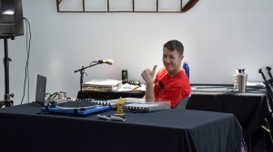 Pat and Ian’s panel was a live portion of their next episode of the CU Podcast. Before it started, and while I settled into my front row seat, the volunteer assigned to the theater asked them to “say something into the microphone” as a mic check. Ian jokingly parroted the request: “say something into the microphone.” I amusingly replied, “I knew you were gonna say that.”